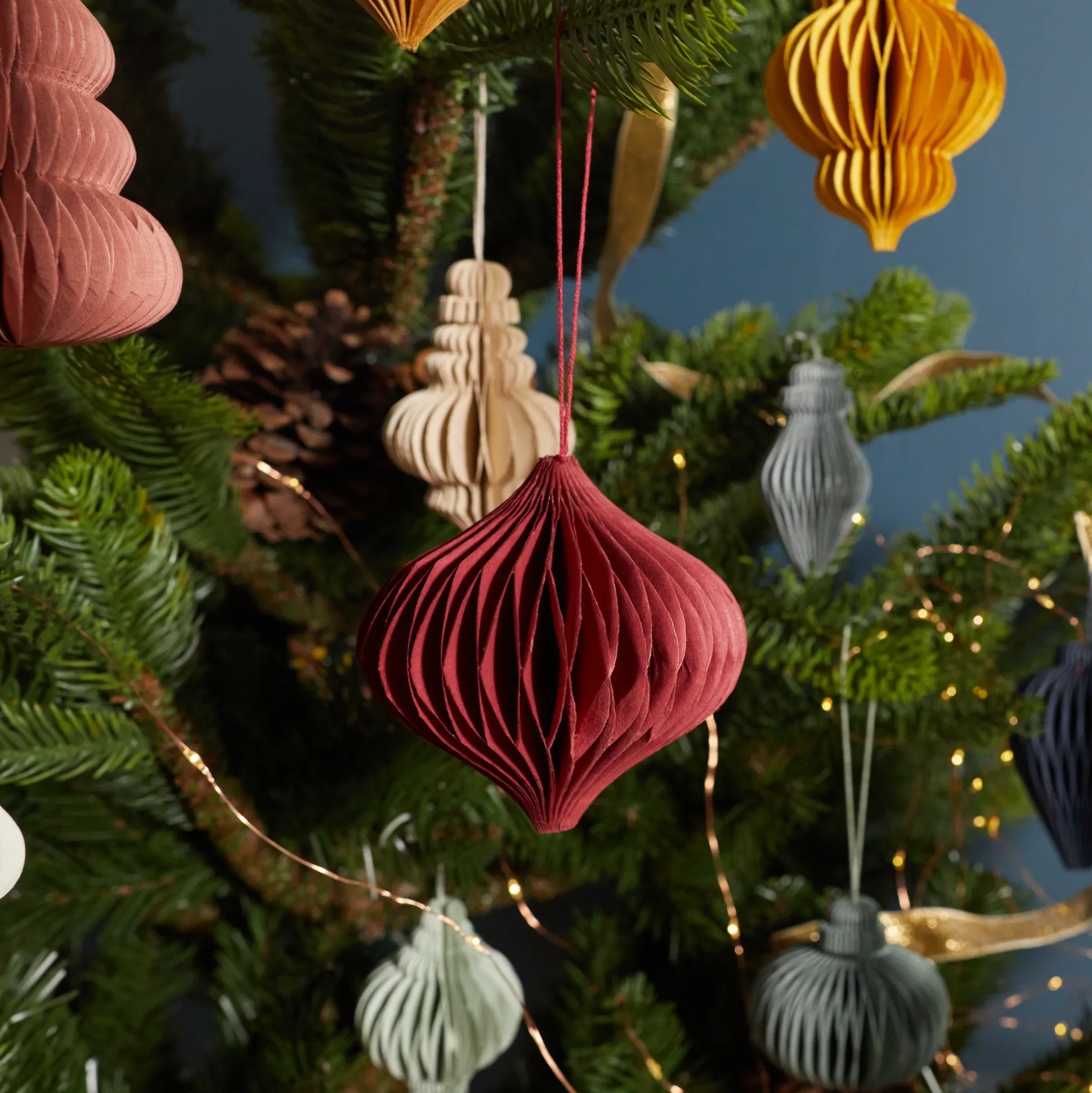 These recycled paper ornaments bring flair and sophistication to your holiday decor with its eco-friendly construction of recycled paper. The accordion-style design and vibrant hues of color create a delicate and unique piece of art that will stand out and impress your guests.
