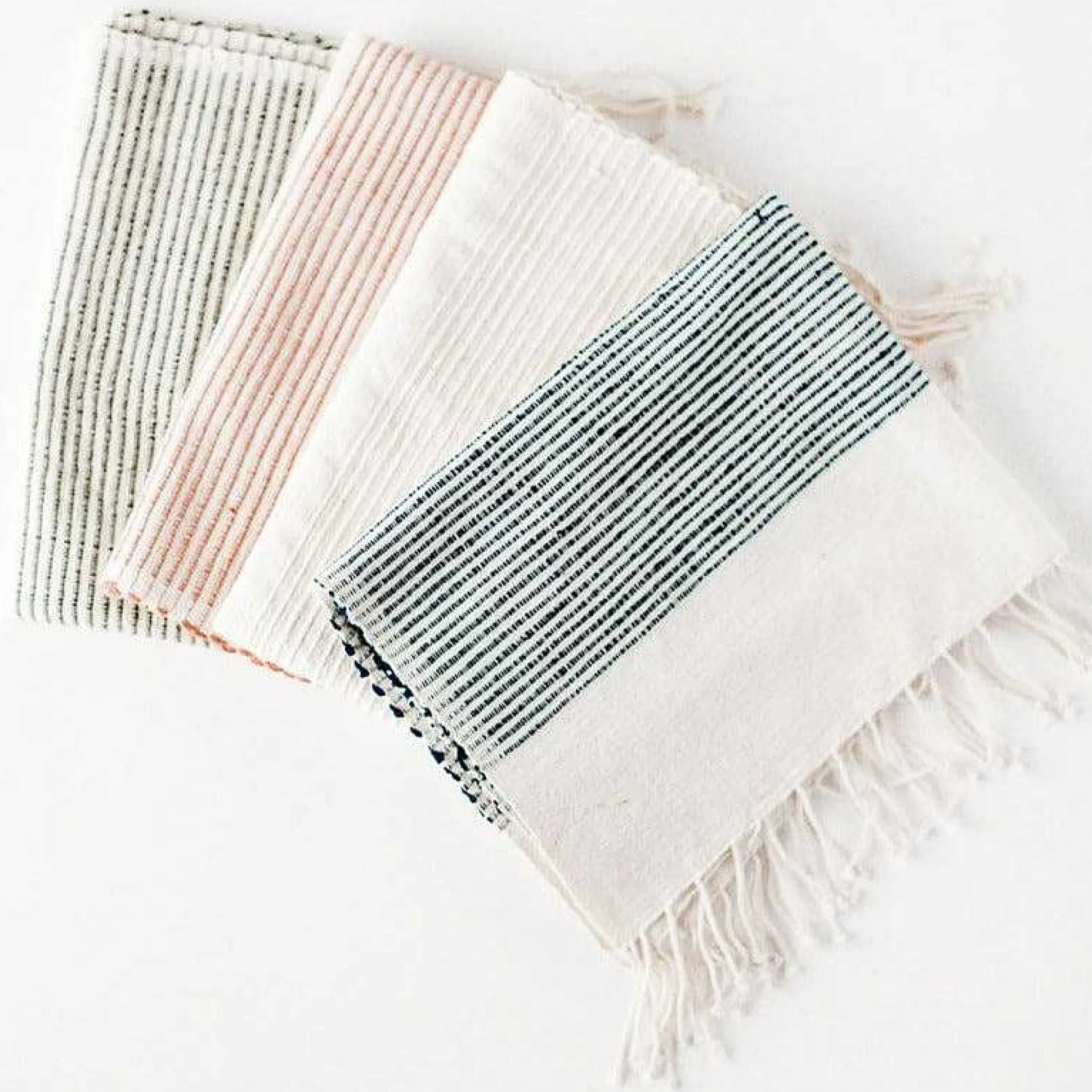 Each Riviera Hand Towel features natural, un-dyed cotton accented with ribbed lines of delicate color. Handwoven from our signature Ethiopian cotton using time-honored weaving traditions and AZO-free dyes. Each towel measures approximately 16″ x 25″ of ultra-soft hand-spun cotton that will become even more absorbent with each wash and dry. Perfect in every kitchen, these tea towels are the ultimate gift for your favorite host.
