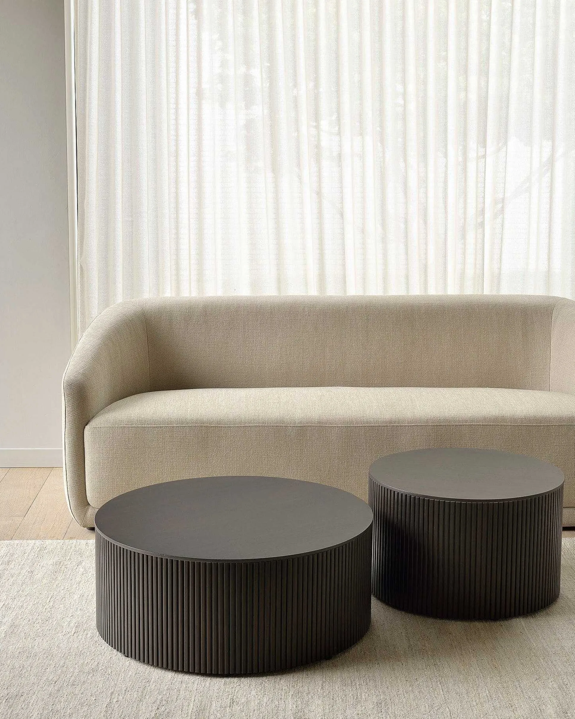 The Roller Max is a clever multifunctional item that combines a coffee table with storage. Encapsulated in its stacked wood-stick effect, the tabletop can be easily removed to hide toys, cushions, and throws from daily life. The perfect solution for smaller living.