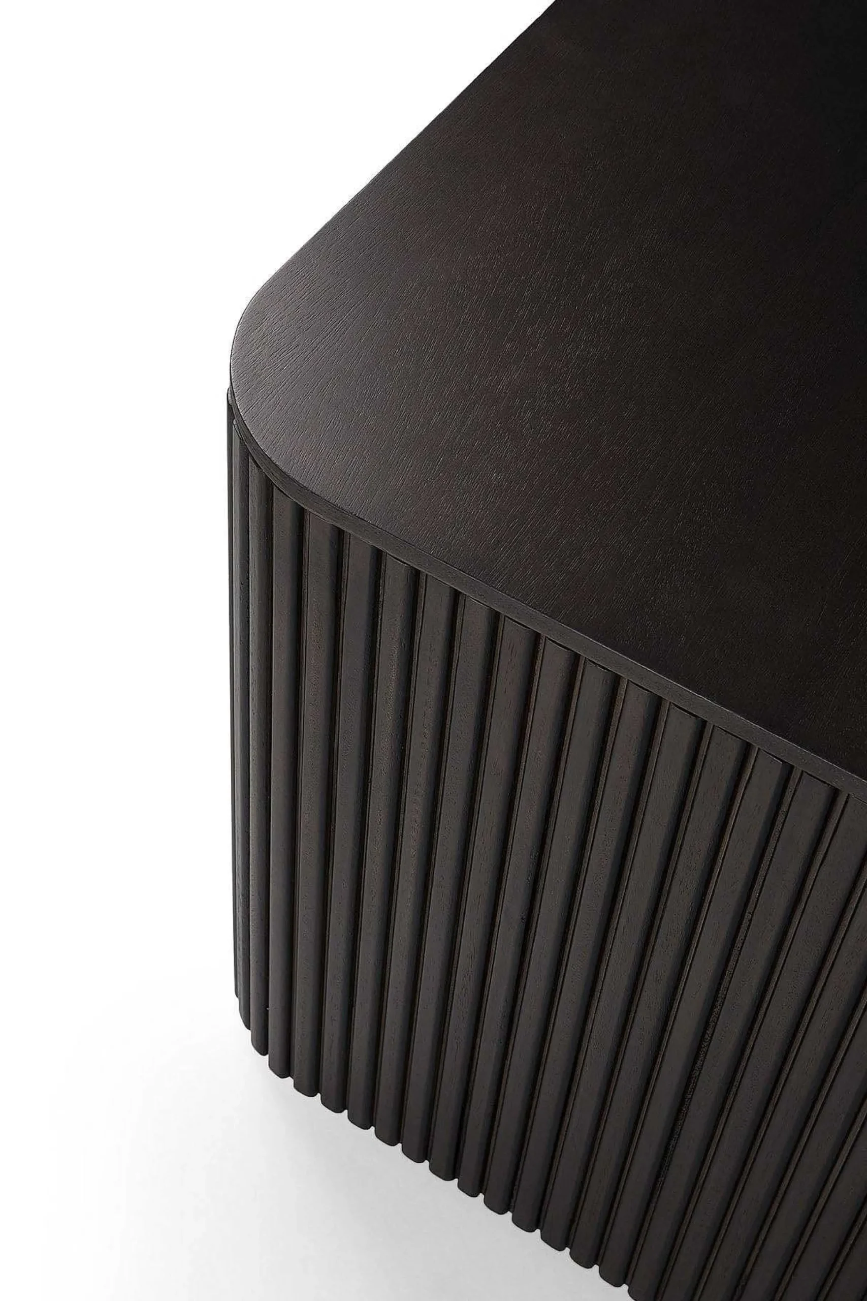The Roller Max is a clever multifunctional item that combines a side table with storage. Encapsulated in its stacked wood-stick effect, the tabletop can be easily removed to hide toys, cushions, and throws from daily life. The perfect solution for smaller living.