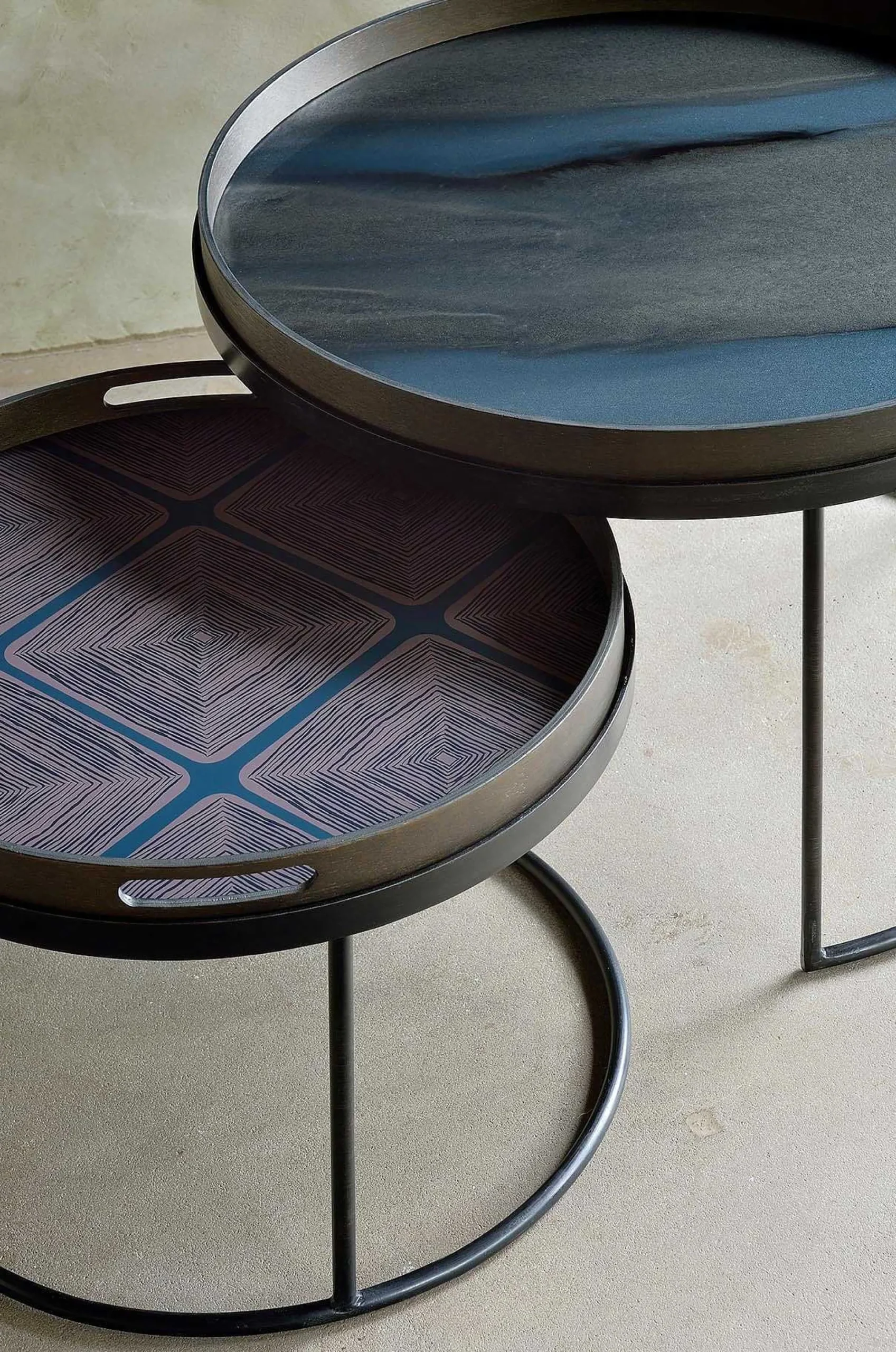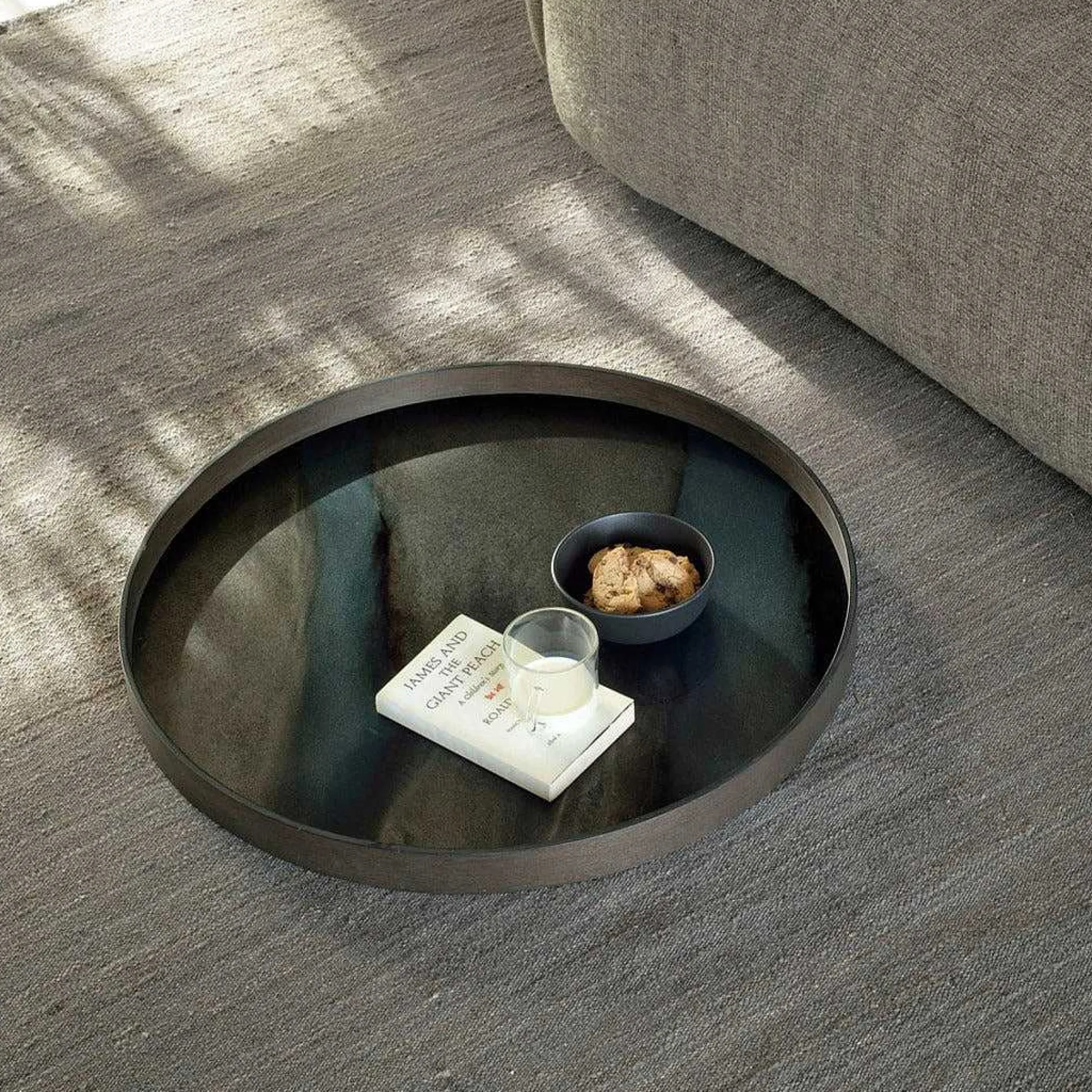 Reminiscent of a riverbed’s movement and reflective metallics, organic movement meets linear shapes in the Linear Flow tray collection. This Graphite Organic glass tray is inspired by the ink drawings at the beginning of the design process, when the pigment hits the glass it takes on a remarkable life of its own. Complementary effects are revealed in unexpected ways.