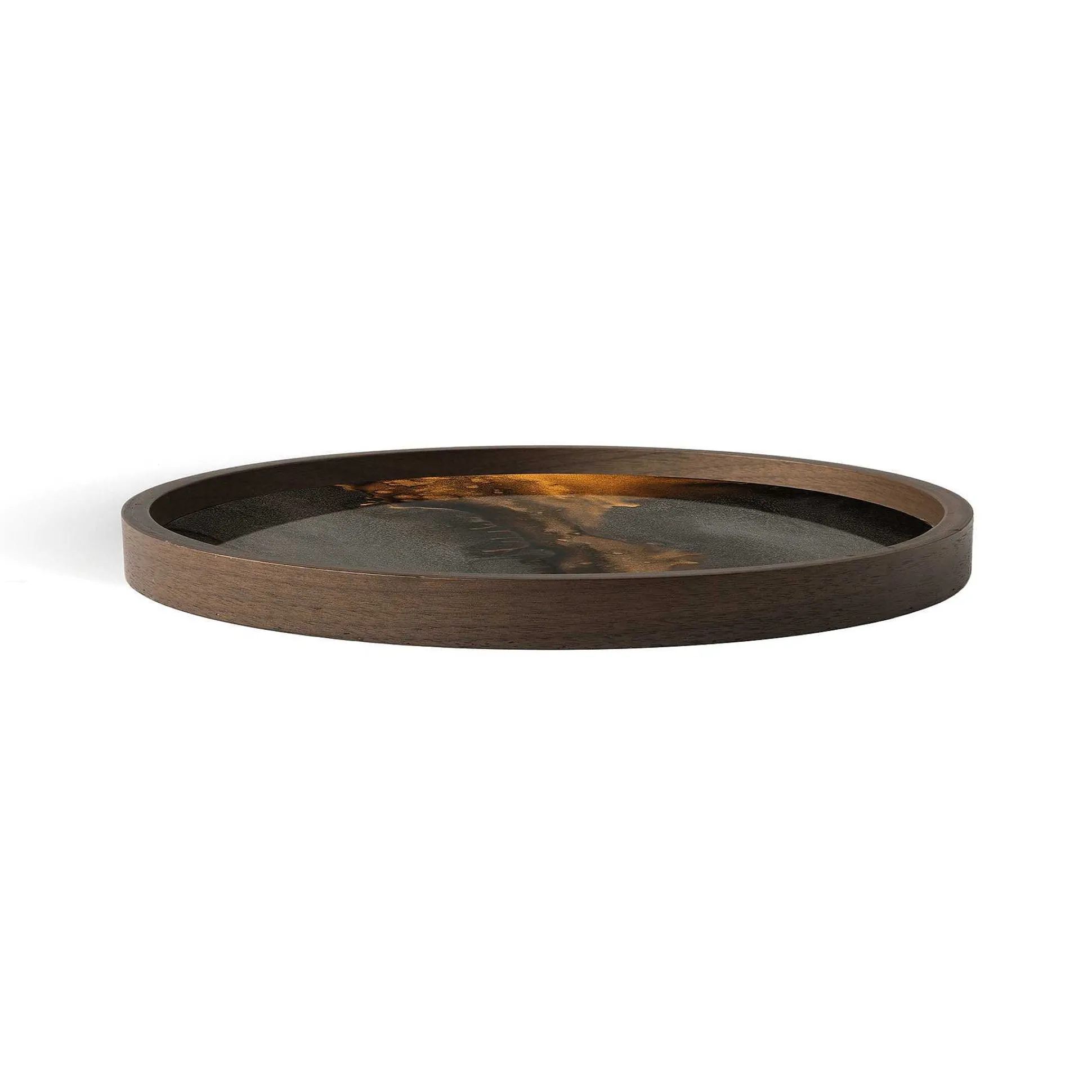 Organic movement meets linear shapes in the Linear Flow tray collection. This Bronze Organic glass valet tray is inspired by the ink drawings at the beginning of the design process, when the pigment hits the glass it takes on a remarkable life of its own. Complementary effects are revealed in unexpected ways, where hand sketched and painted linear patterns generate a truly distinctive finish.