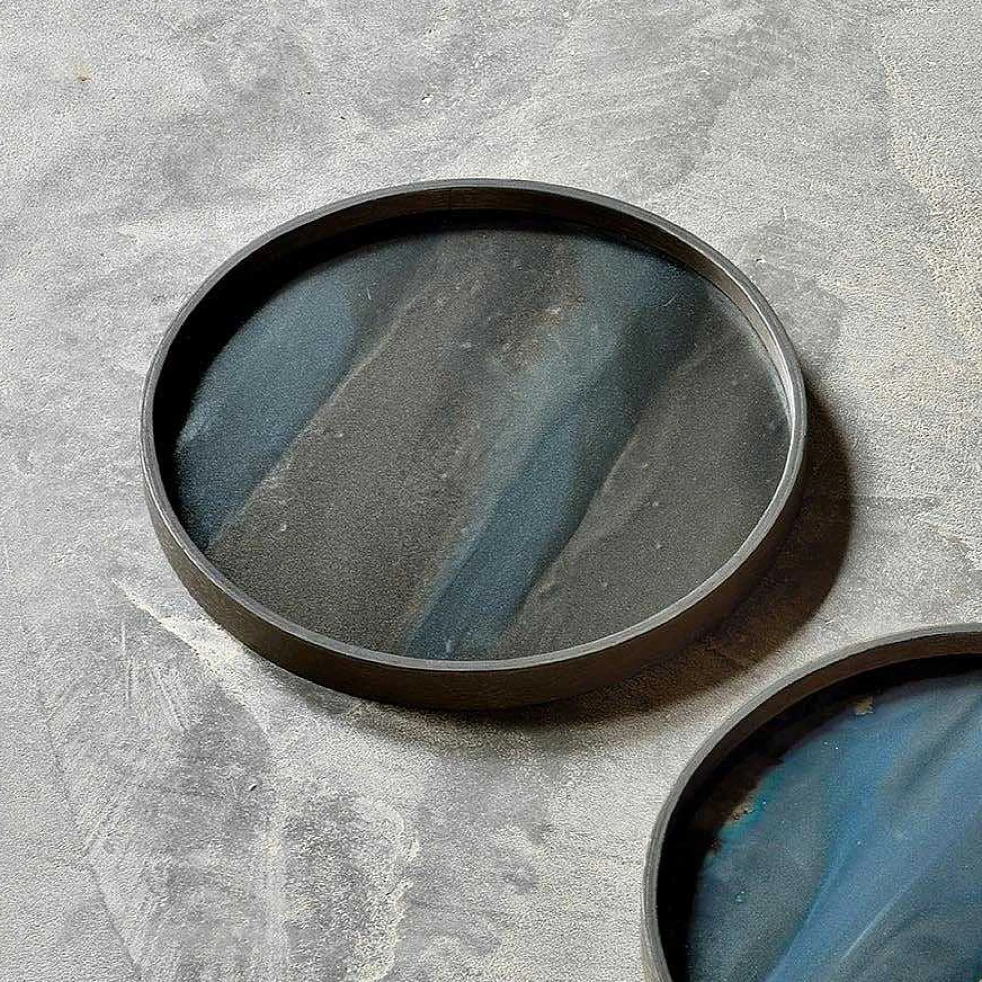 Organic movement meets linear shapes in the Linear Flow tray collection. This Graphite Organic glass valet tray is inspired by the ink drawings at the beginning of the design process, when the pigment hits the glass it takes on a remarkable life of its own. Complementary effects are revealed in unexpected ways, where hand sketched and painted linear patterns generate a truly distinctive finish.