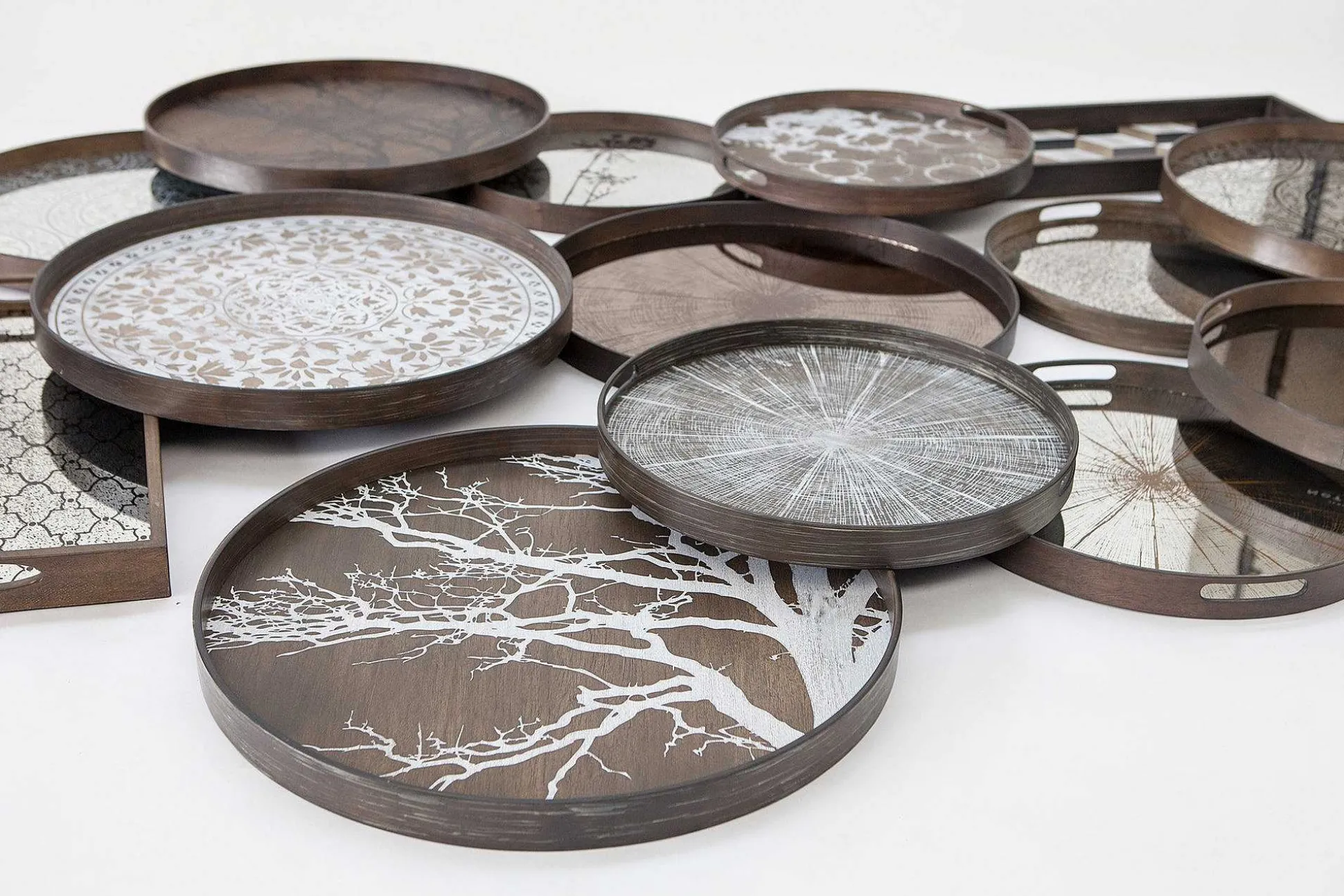 A subdued color palette meets captivating motifs inspired by nature and travel. This Slice mirror tray experiments with the balance between rich patterns offset with muted tones, revealing the beauty behind the deceivingly ordinary subjects from which inspiration is drawn. In doing so, this collection captures the essence of timelessness.