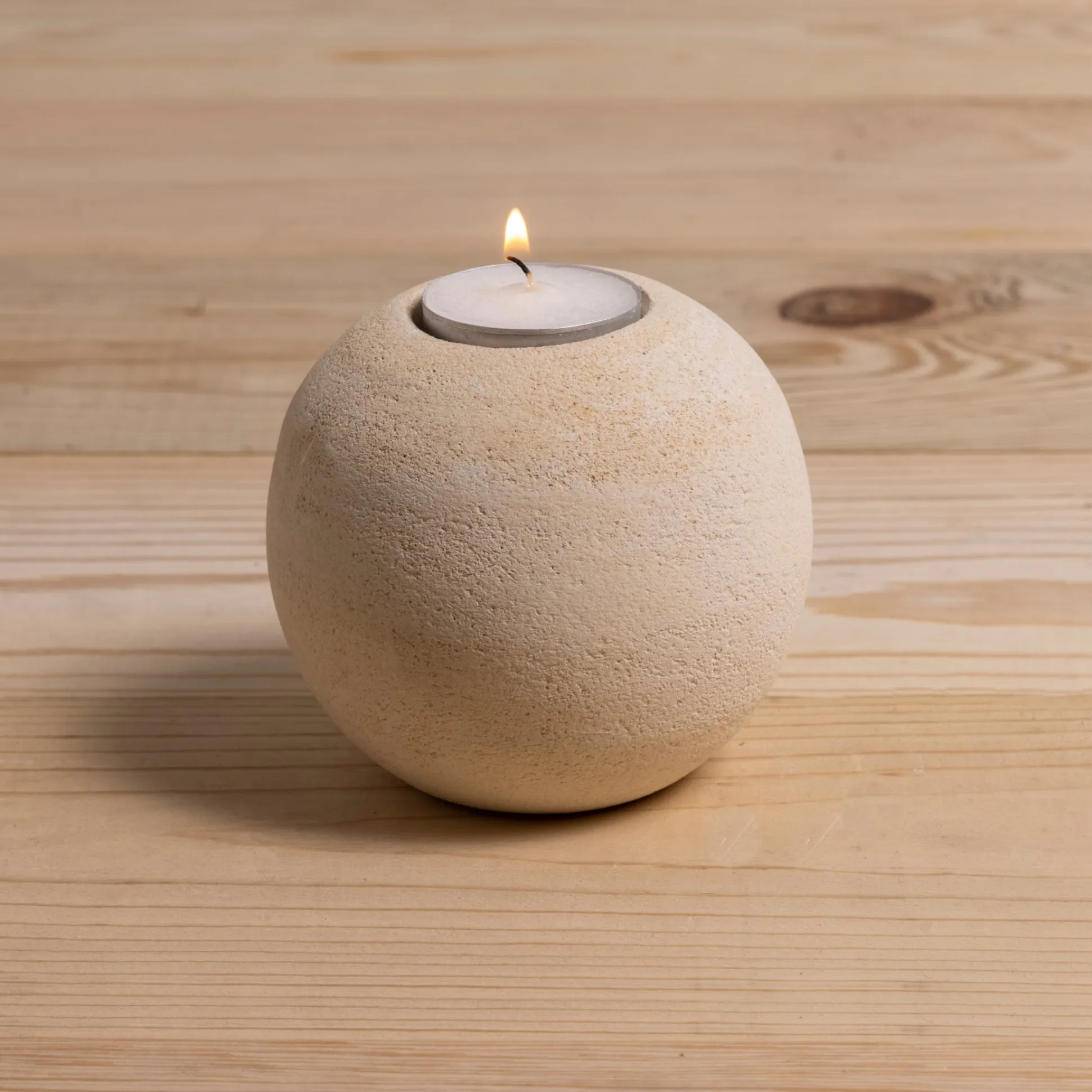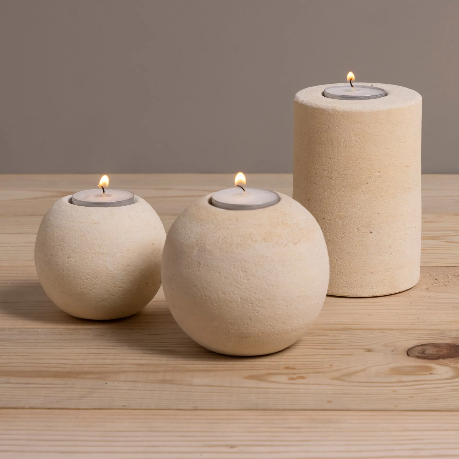Sleek simple round tea light candle holders made of natural stone that come in two different sizes. Great for elegant events or to update your space with!