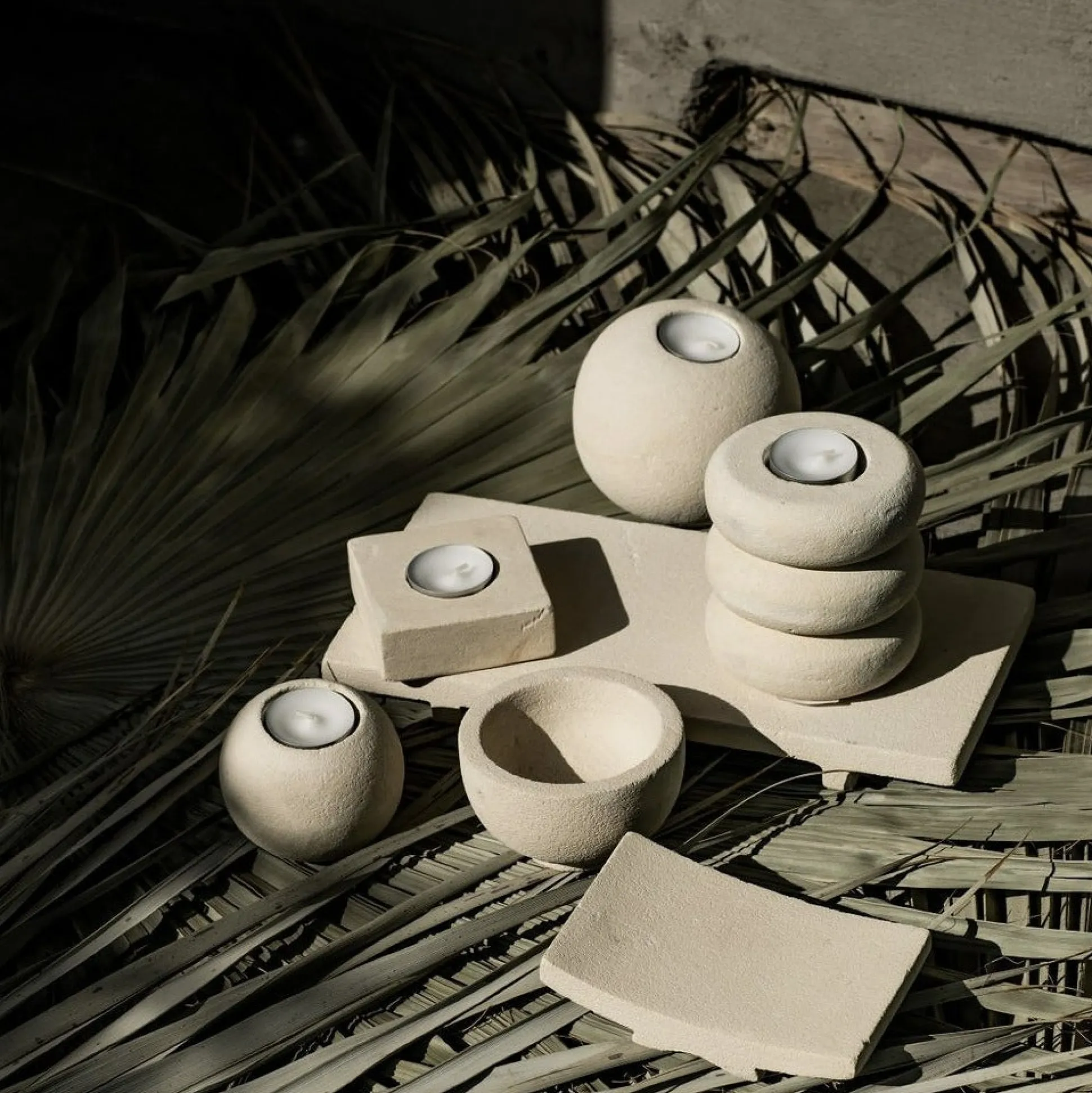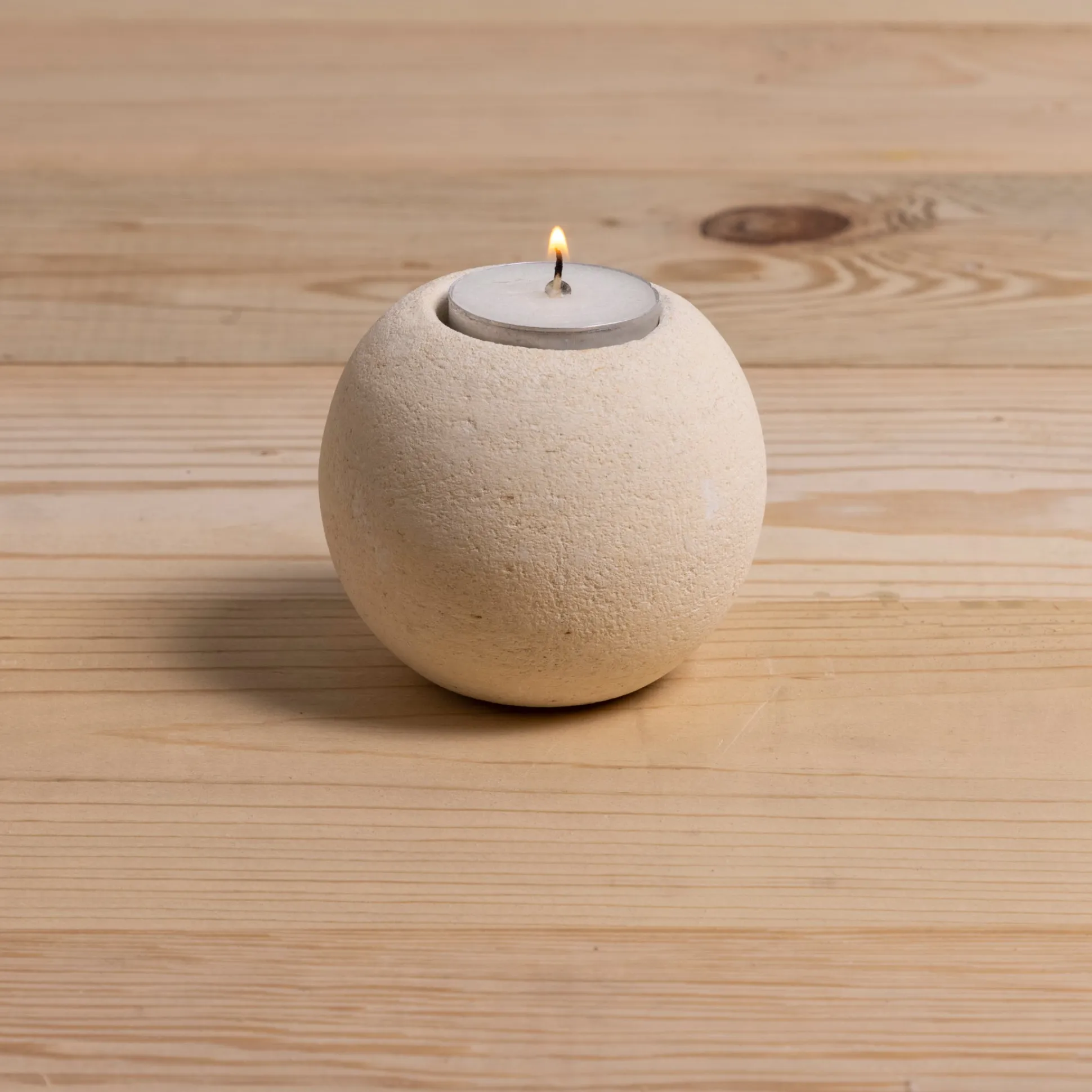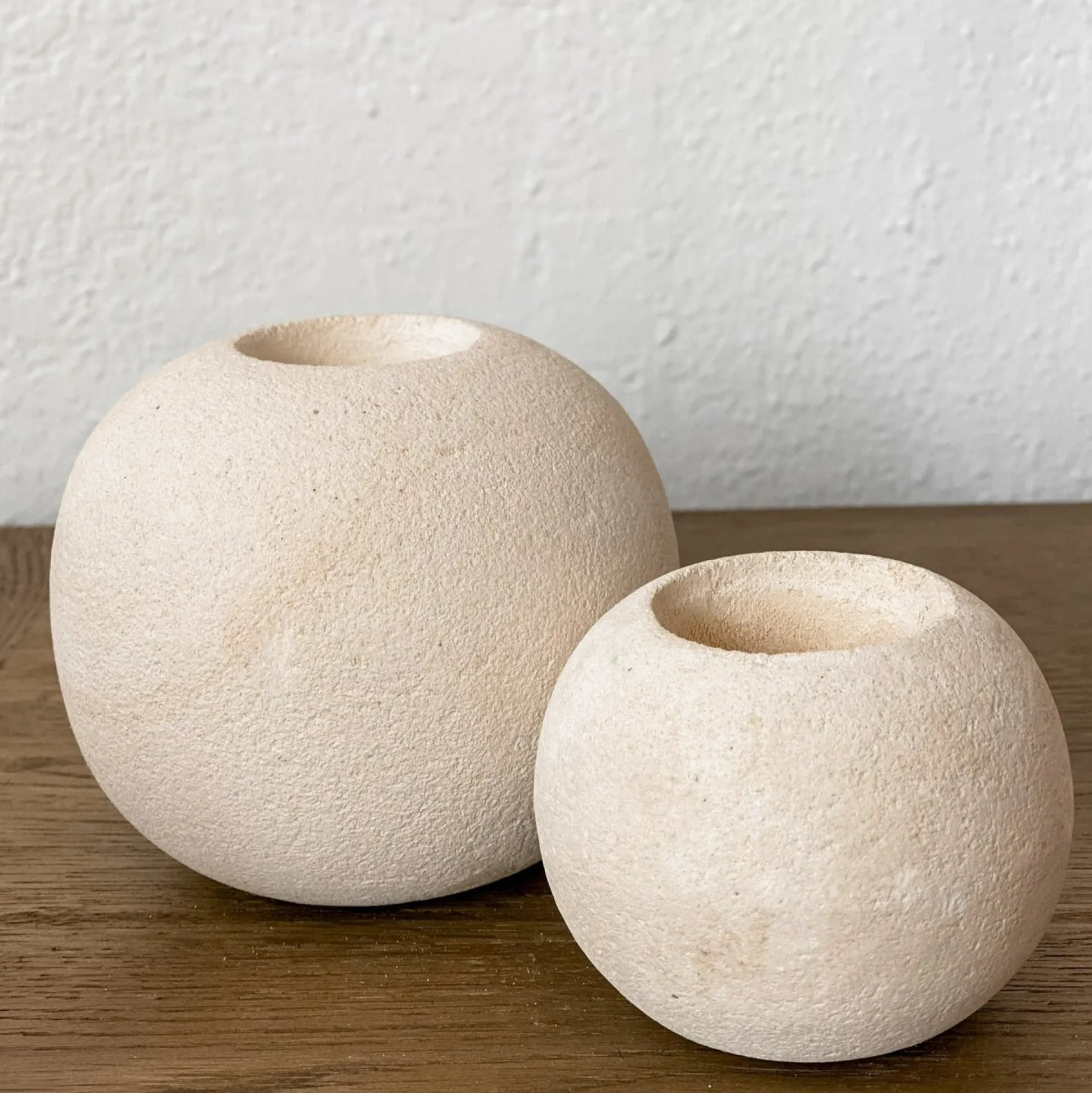 Sleek simple round tea light candle holders made of natural stone that come in two different sizes. Great for elegant events or to update your space with! Can fit one standard tea light candle. Comes in small and large (sold individually)