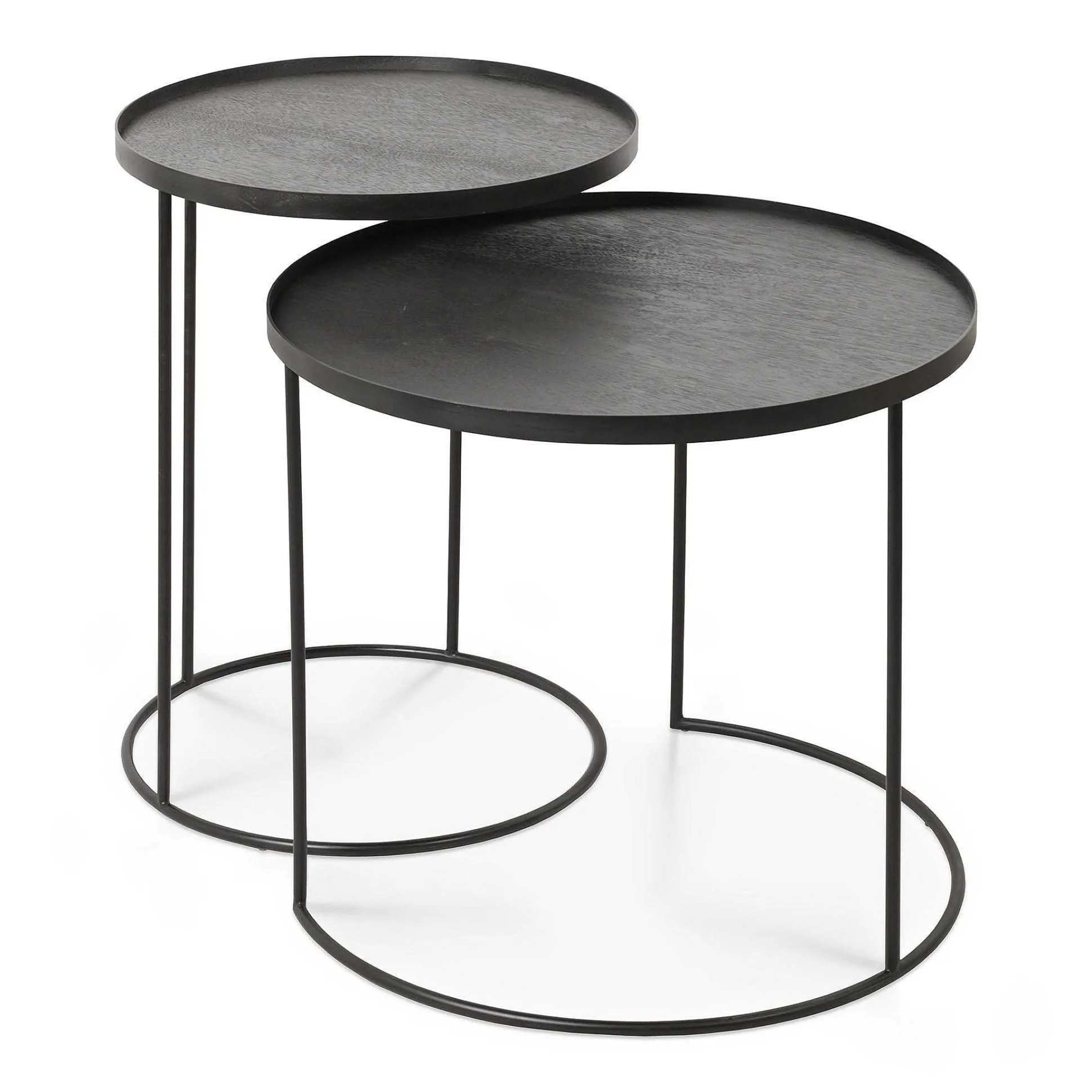 - Sold as a set of 2 tables. To be combined with a small and a large round tray. Trays to be ordered separately.