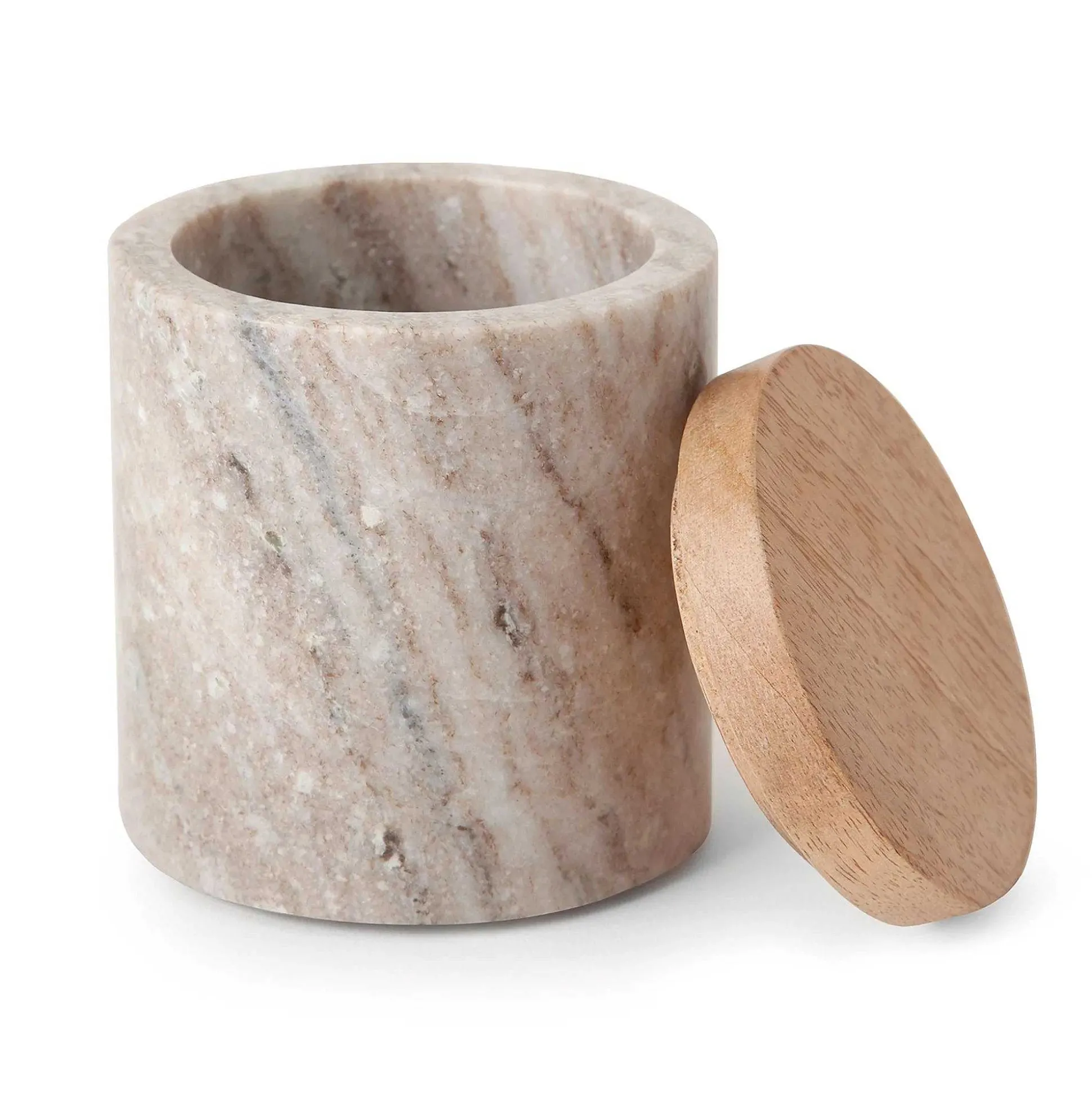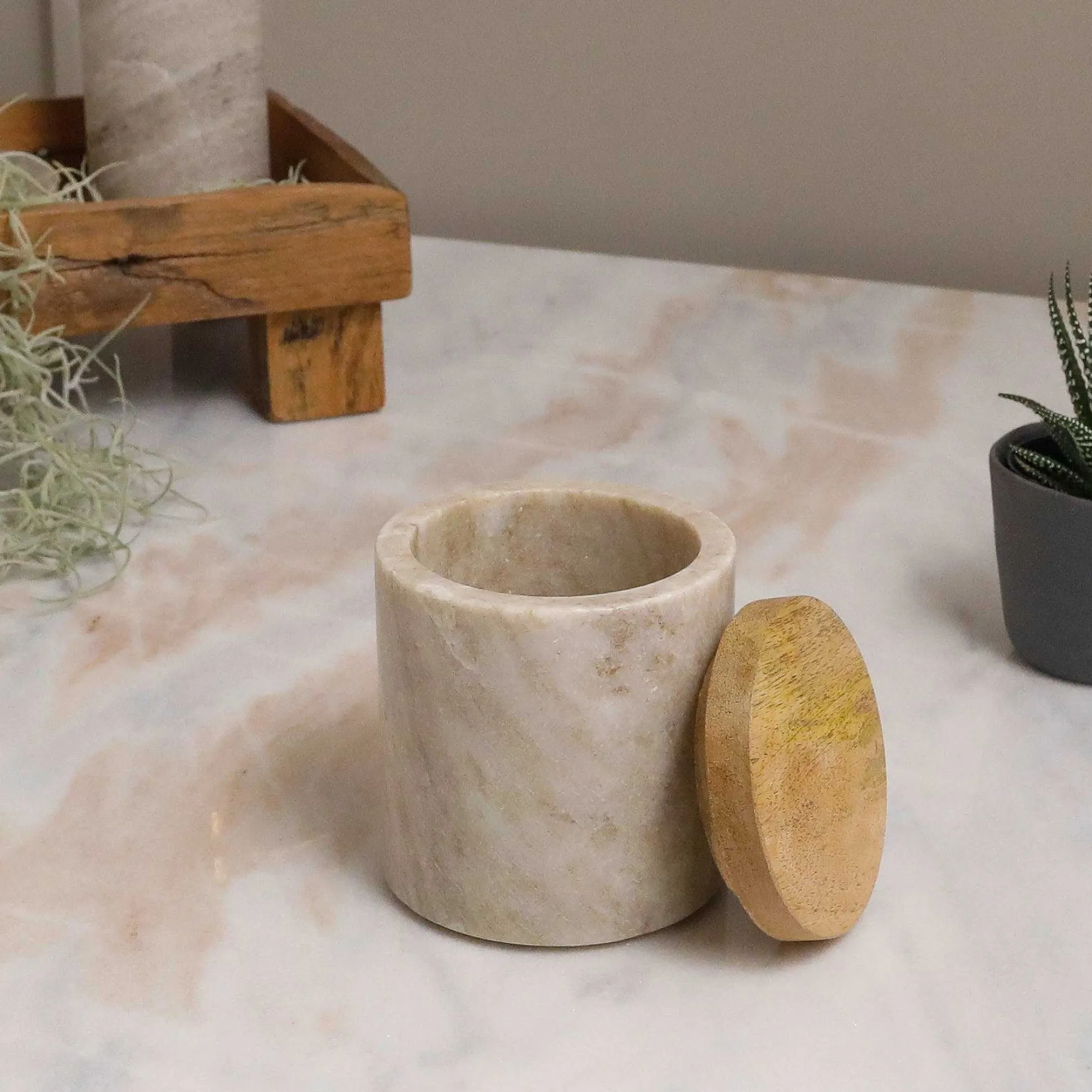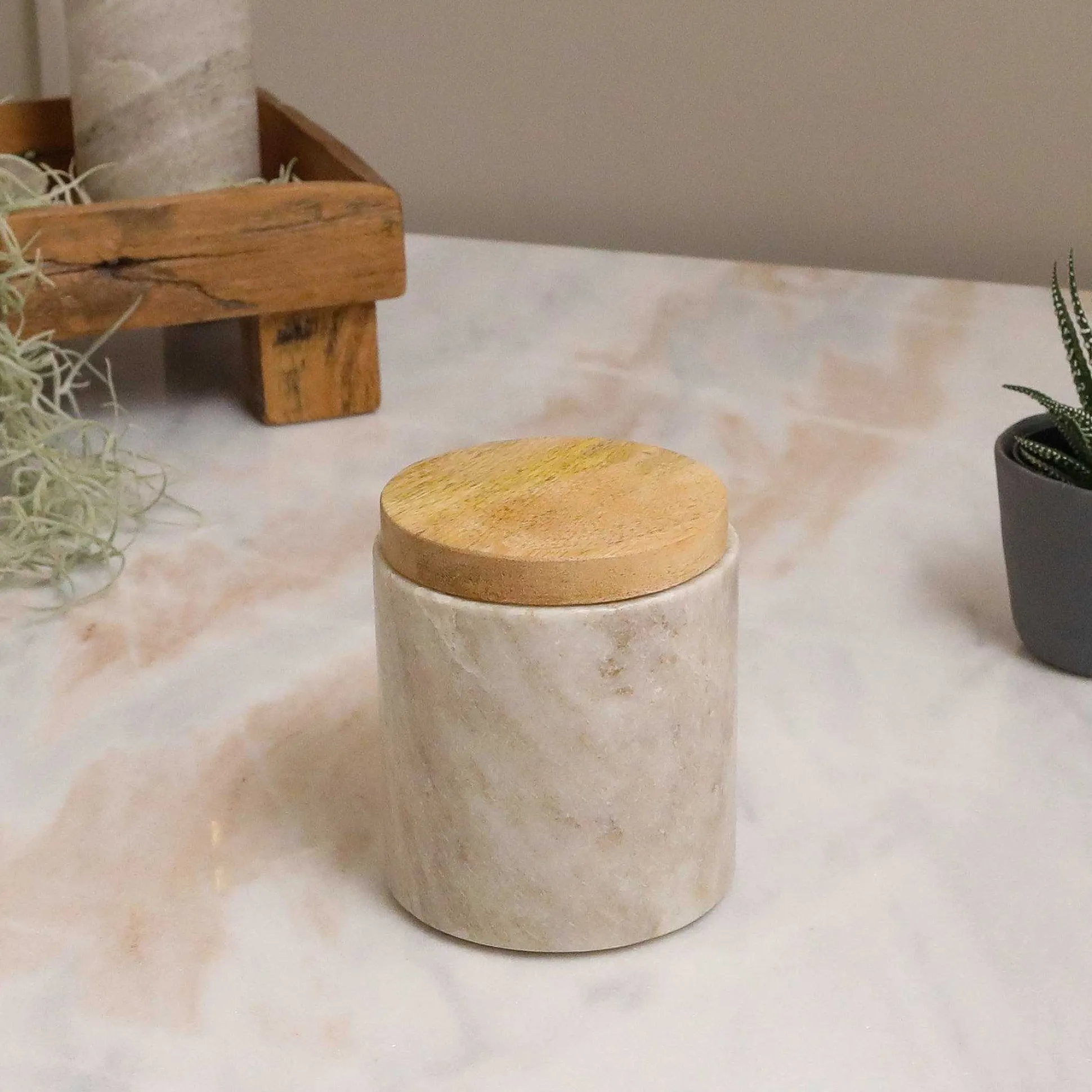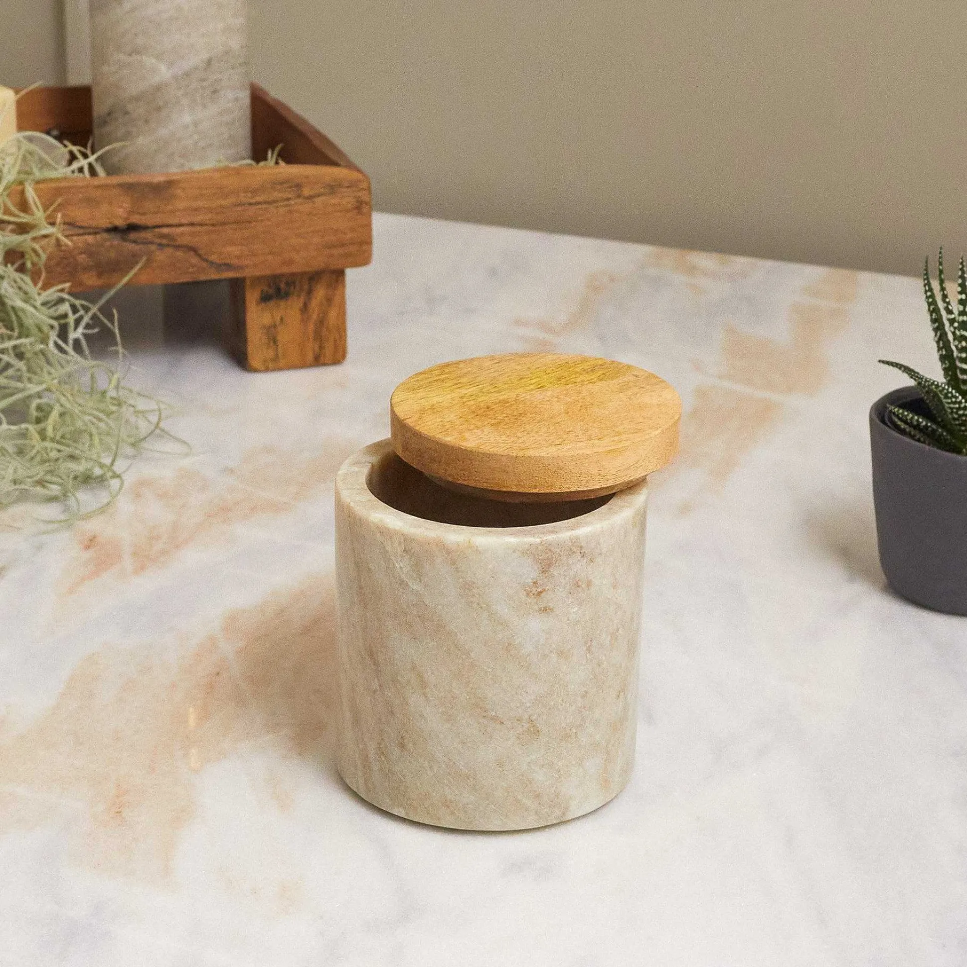 Crafted from natural marble and featuring mango wood accents, this beige-toned collection adds a modern-meets-earthly delights appeal to any spa.