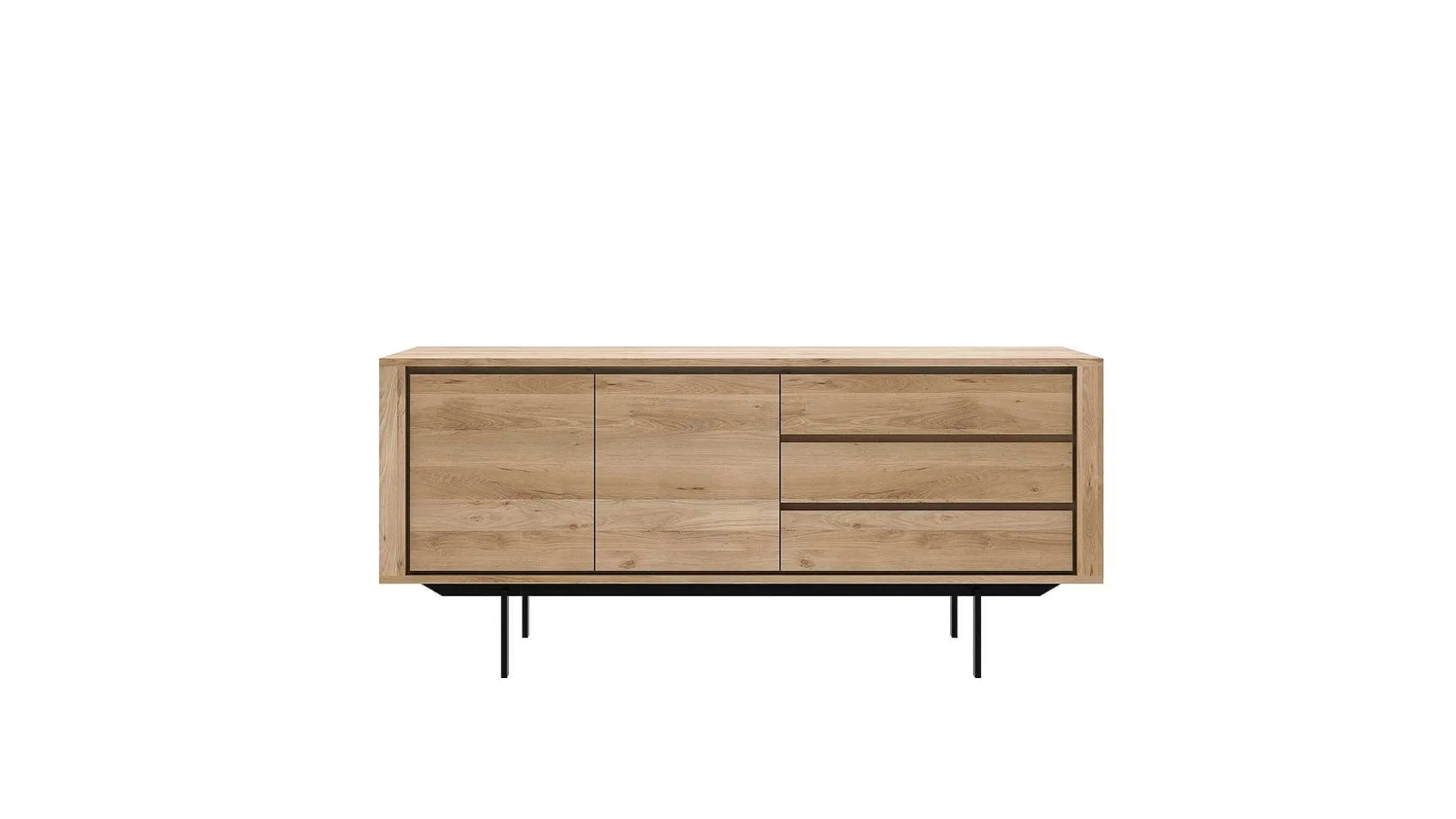 The Shadow collection is straightforward and robust with decisive lines. This more recent design with black metal legs, giving the design room to breathe, elevates this sideboard to new heights.