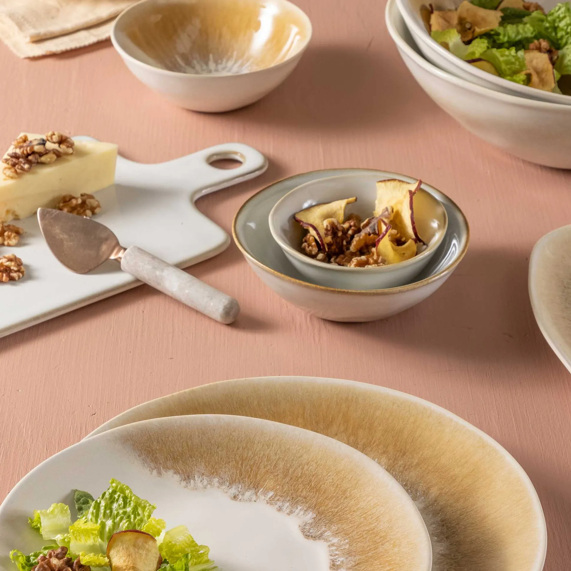 Our Sienna dinnerware challenges the status quo with a transformative reactive glaze which makes for a unique and ever-changing tablescape. Handmade in Portugal, Sienna boasts a lustrous finish with minimally-toned drips and ombre coloring that is reminiscent of a distant sunrise. The Sienna collection aims to reduce waste and lessen its ecological footprint by leveraging solar energy, and water recovery/reuse during the making process.