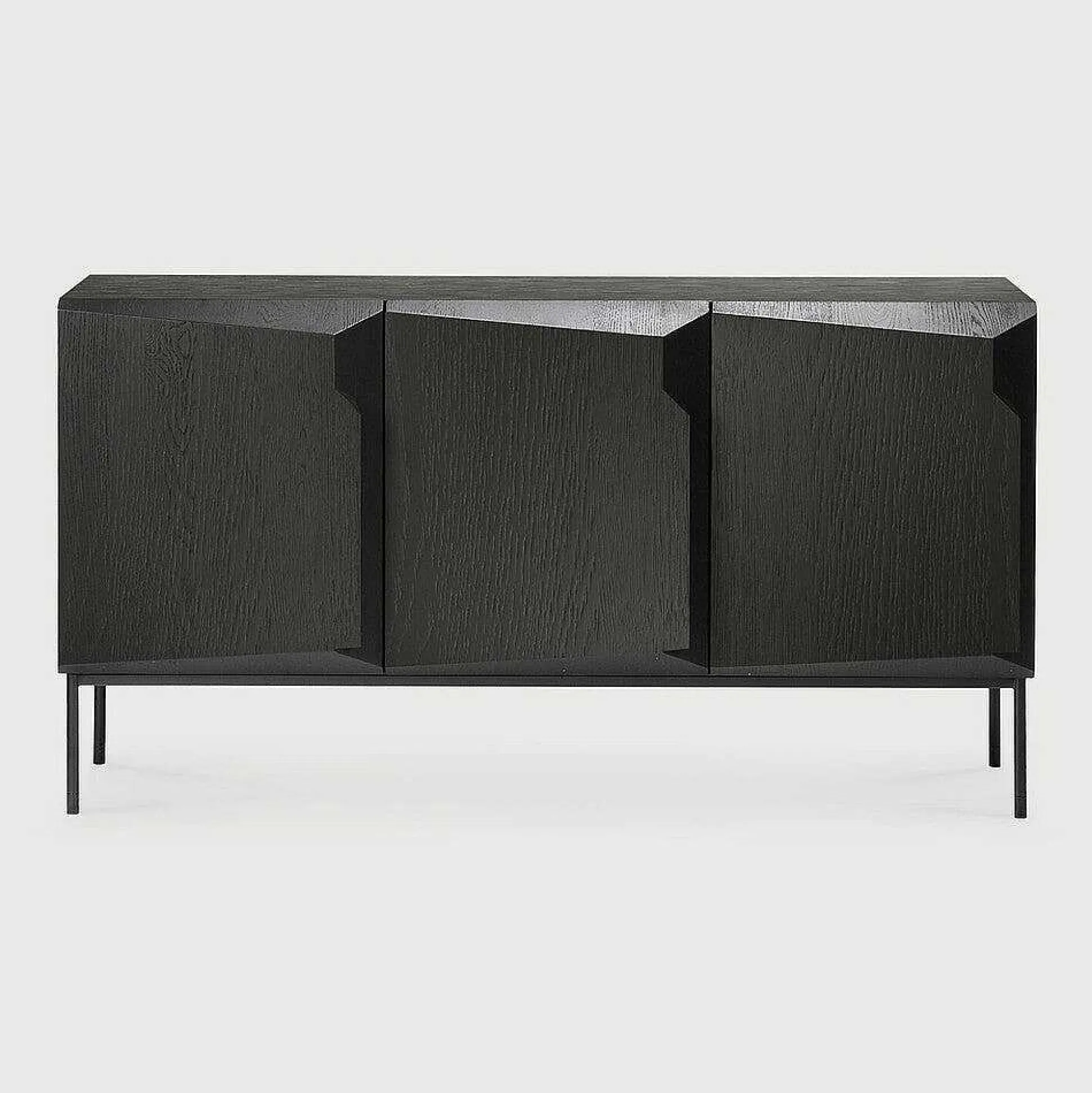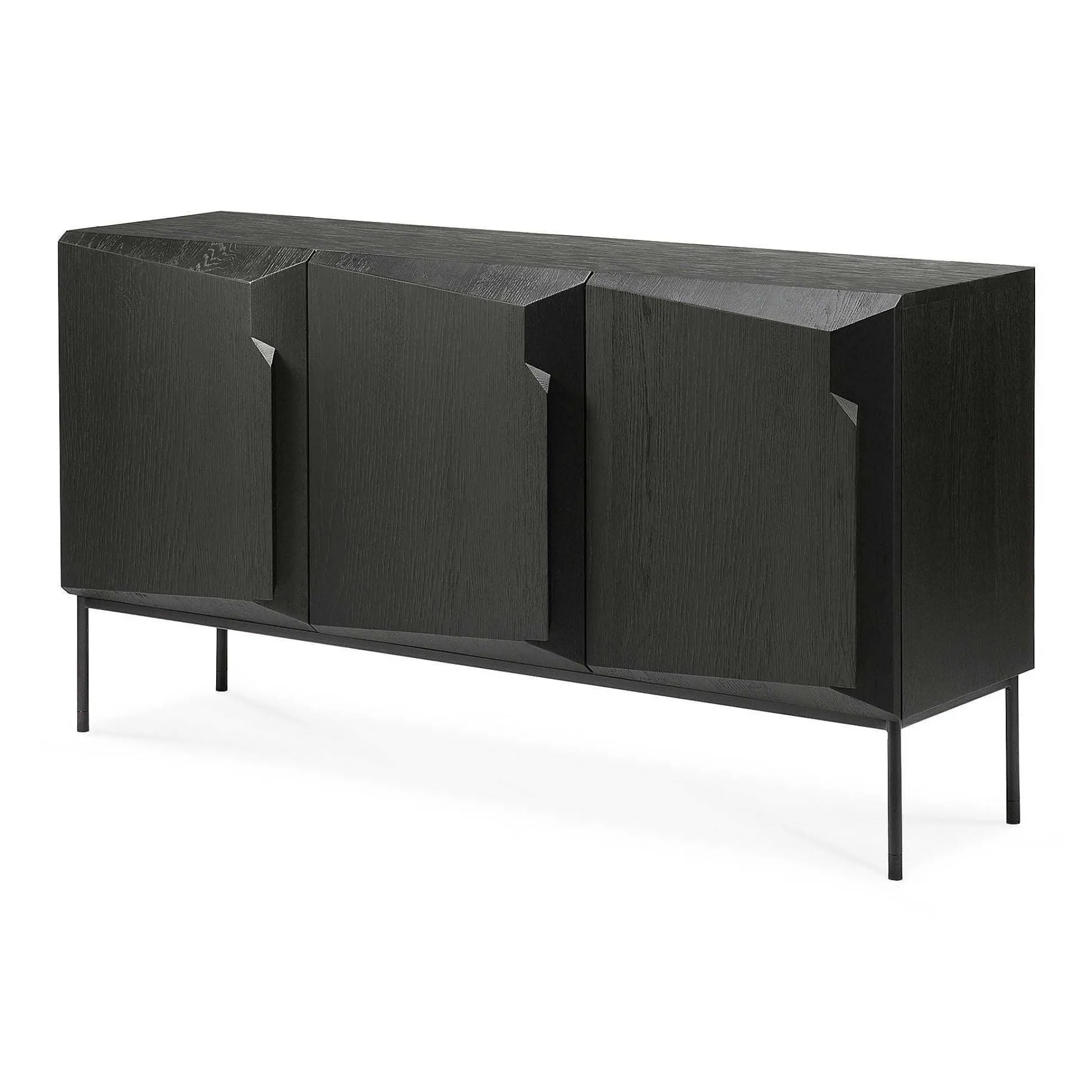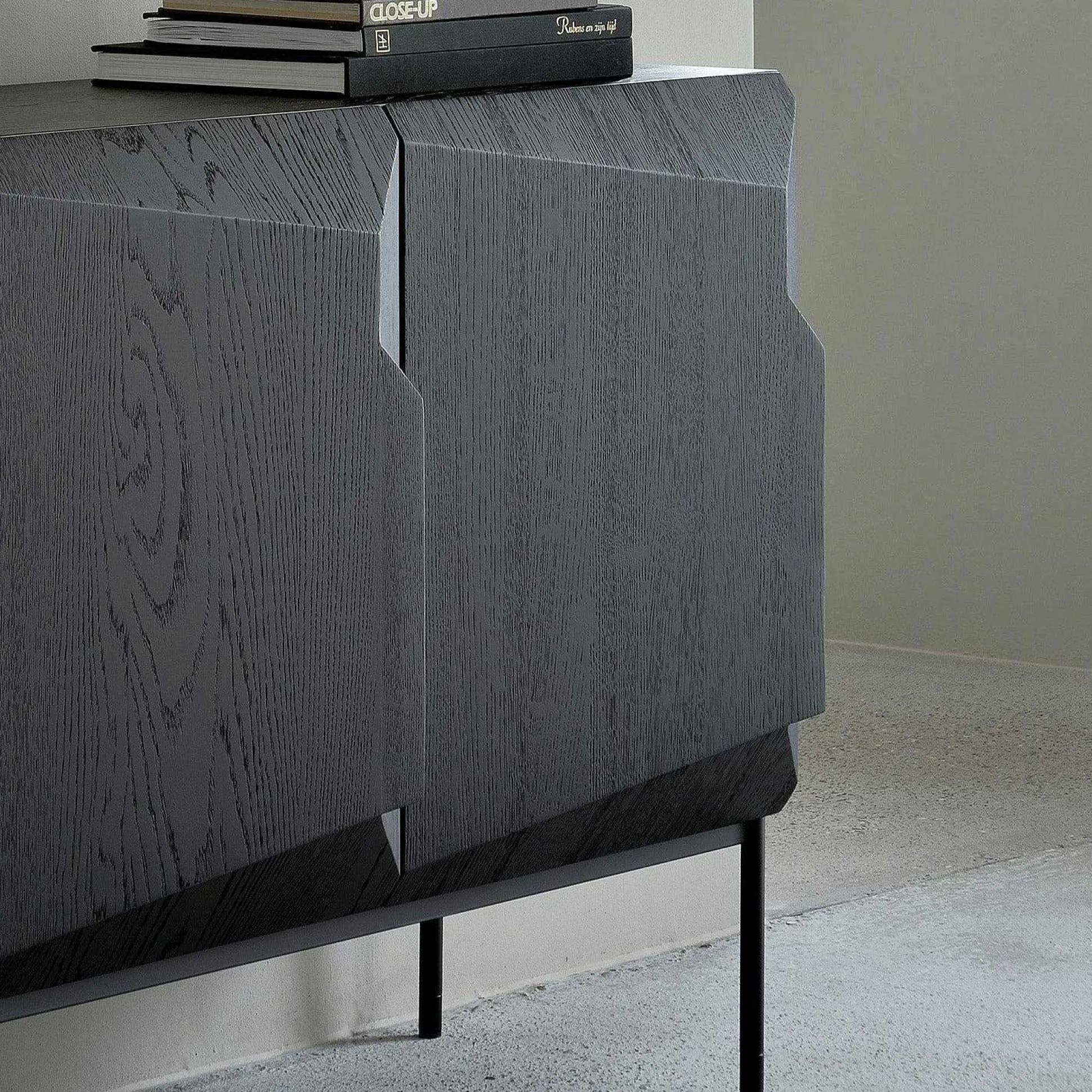 An angular composition forms the heart of a design that aims to distance itself from traditional static and immobile surfaces. A unique sense of volume is created which alters your perception of the sideboard as you walk by.