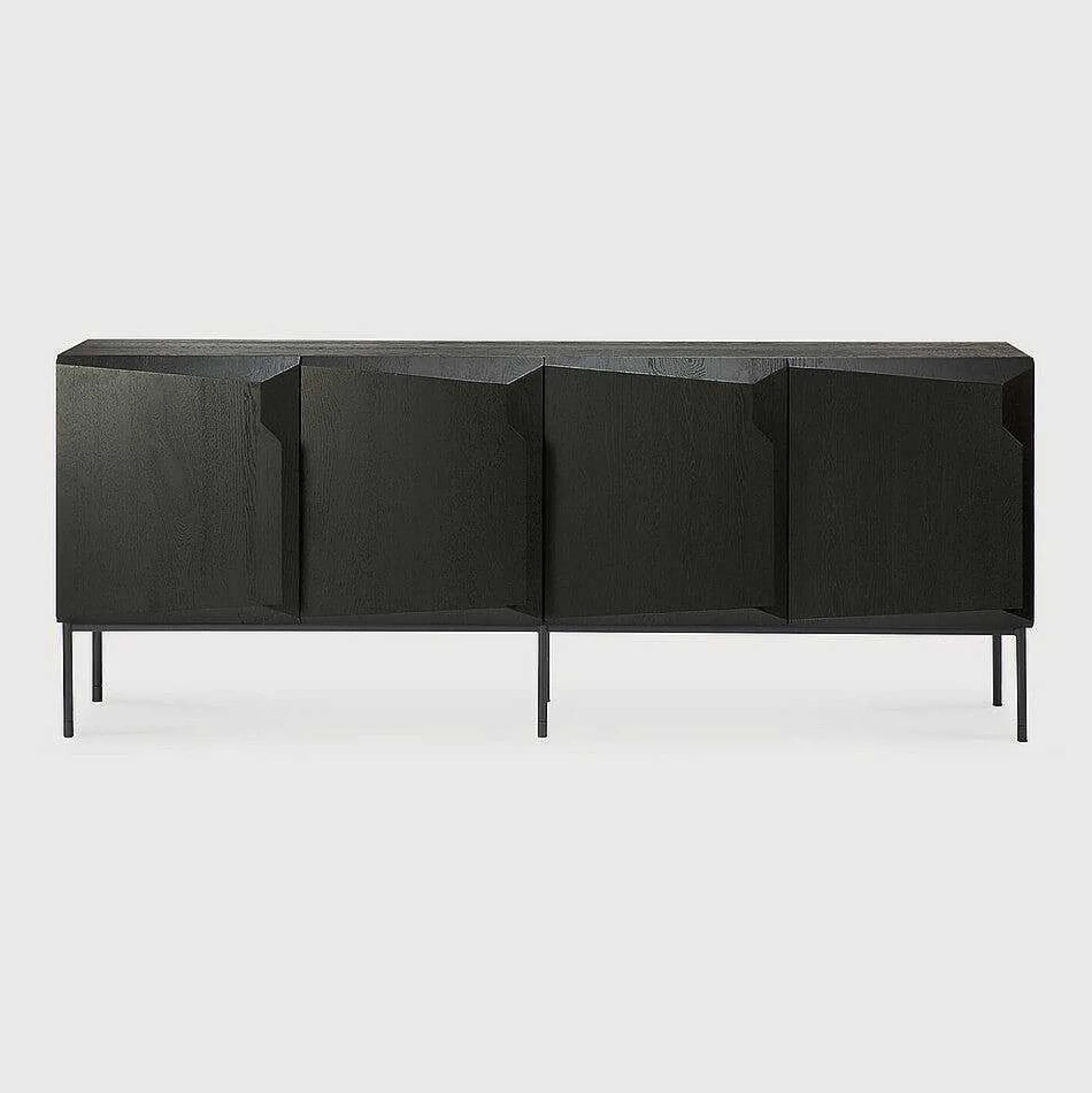 An angular composition forms the heart of a design that aims to distance itself from traditional static and immobile surfaces. A unique sense of volume is created which alters your perception of the sideboard as you walk by.