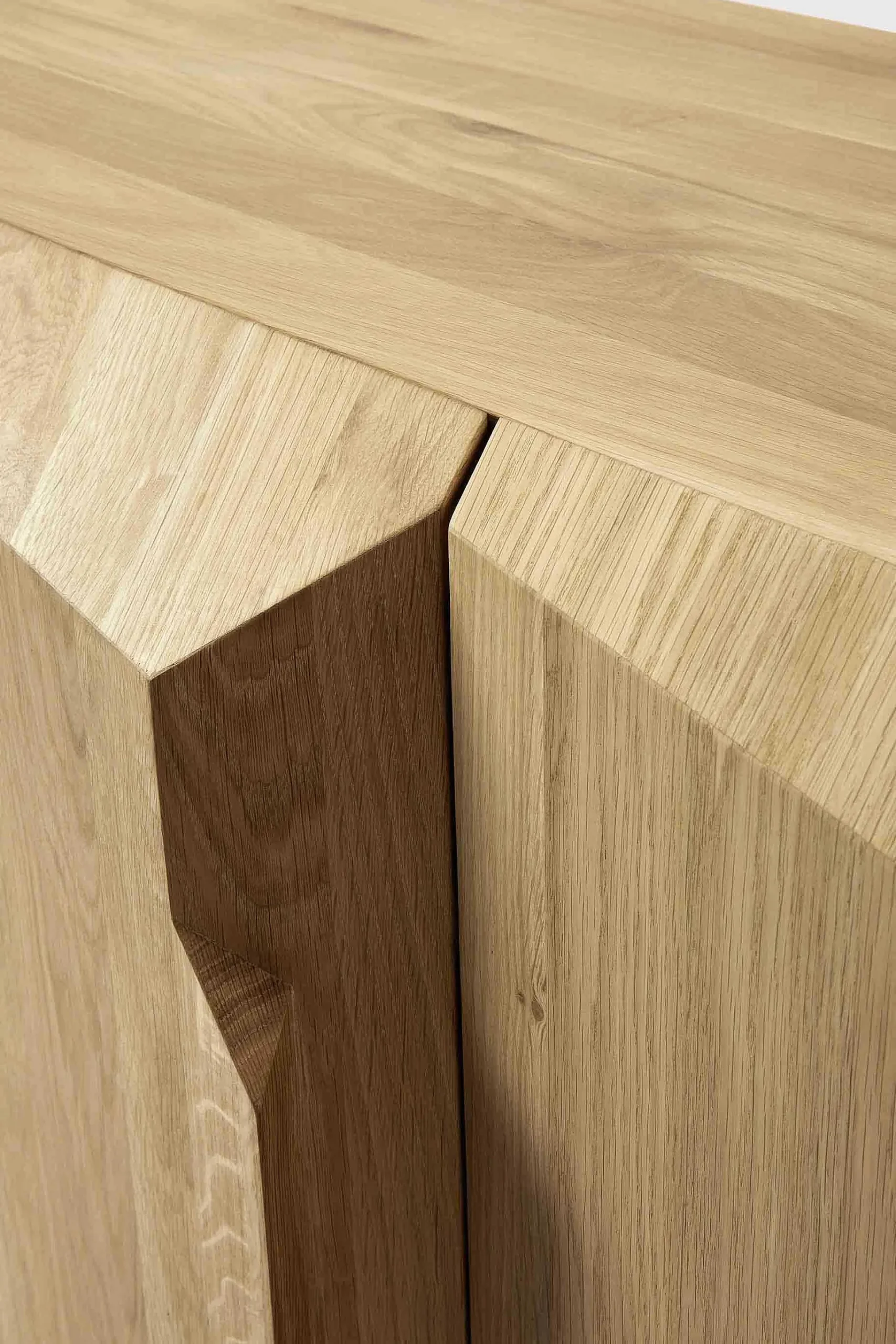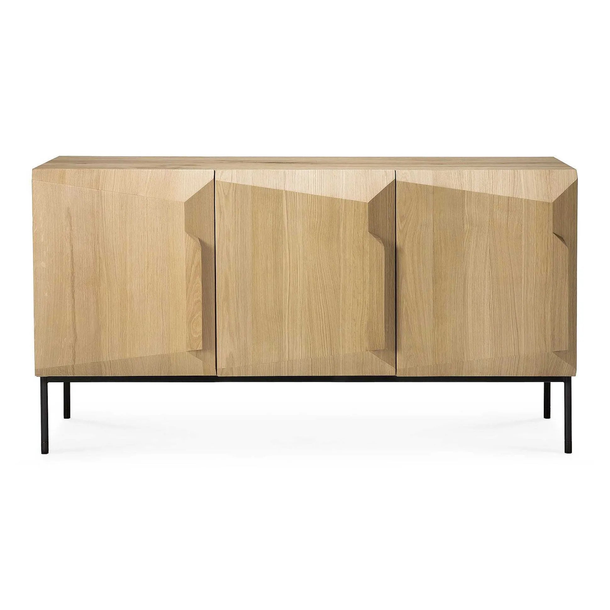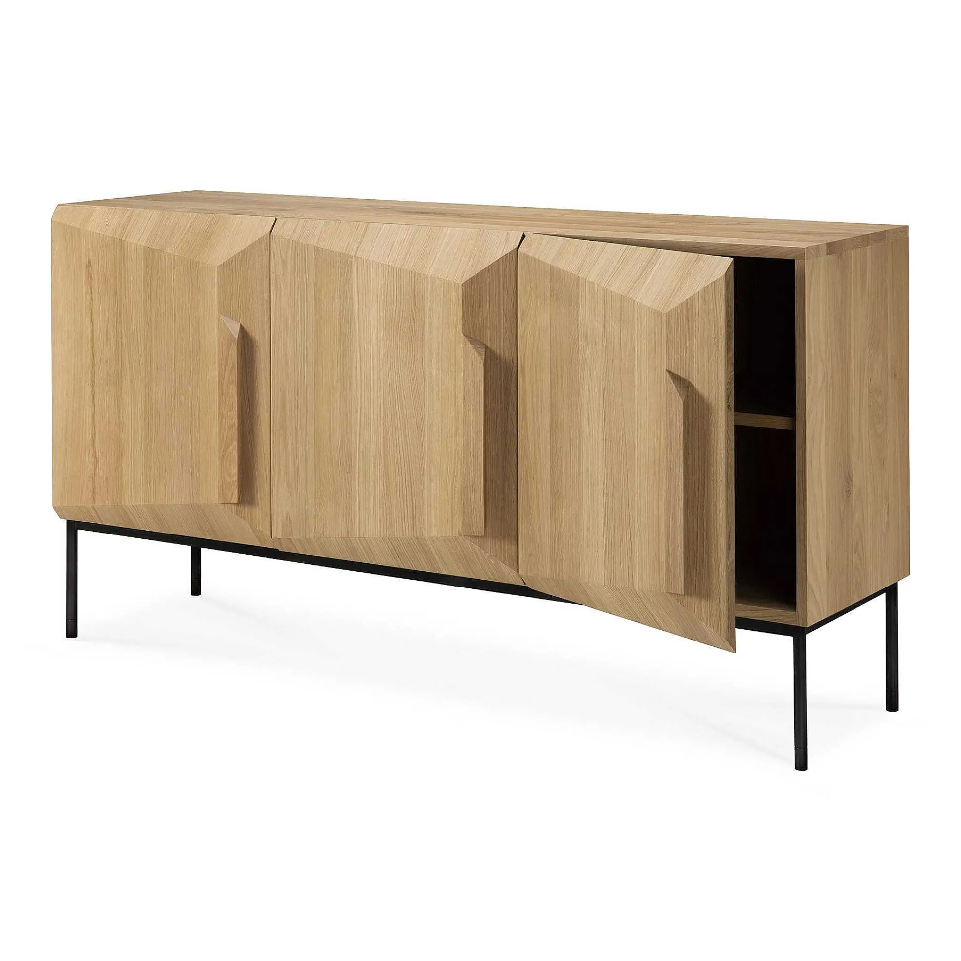 An angular composition forms the heart of a design that aims to distance itself from traditional static and immobile surfaces. A unique sense of volume is created which alters your perception of the sideboard as you walk by.