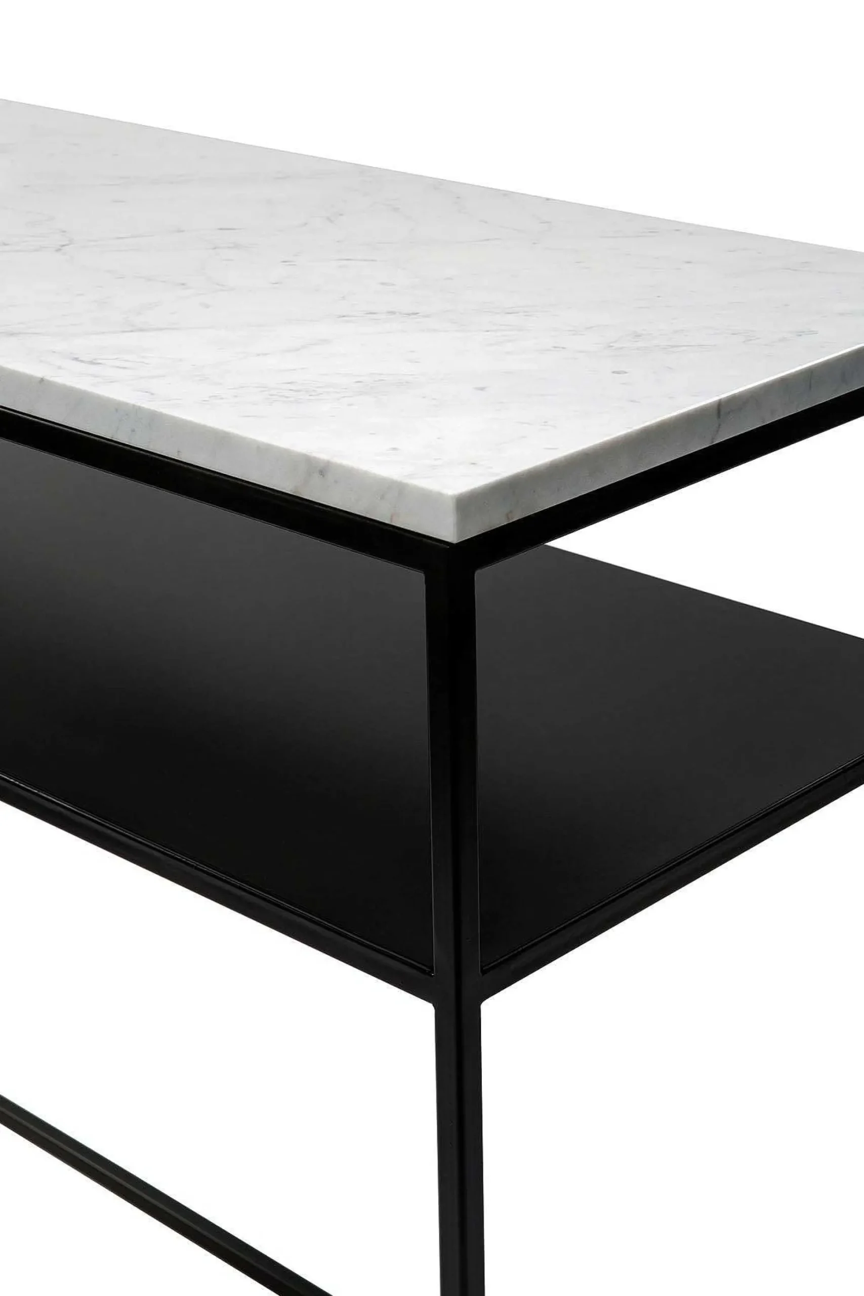An even mix of contemporary and glamorous elements, this clean-lined console brings a touch of chic style to any room. With its modern open metal frame and its pristine marble, that serves as a nod to classic designs, the Stone console is a centerpiece in every sense of the word.