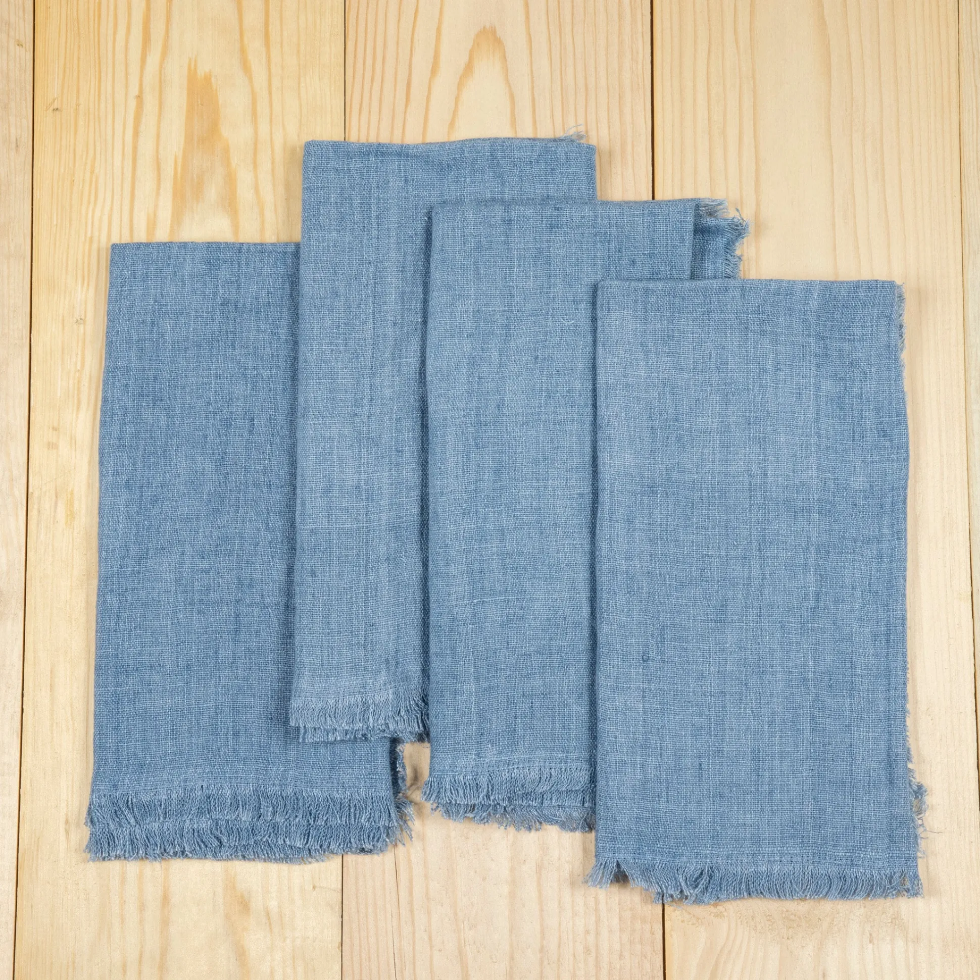 Stone Washed Linen Dinner Napkins, Indigo, Set of 4^Be Home Shop