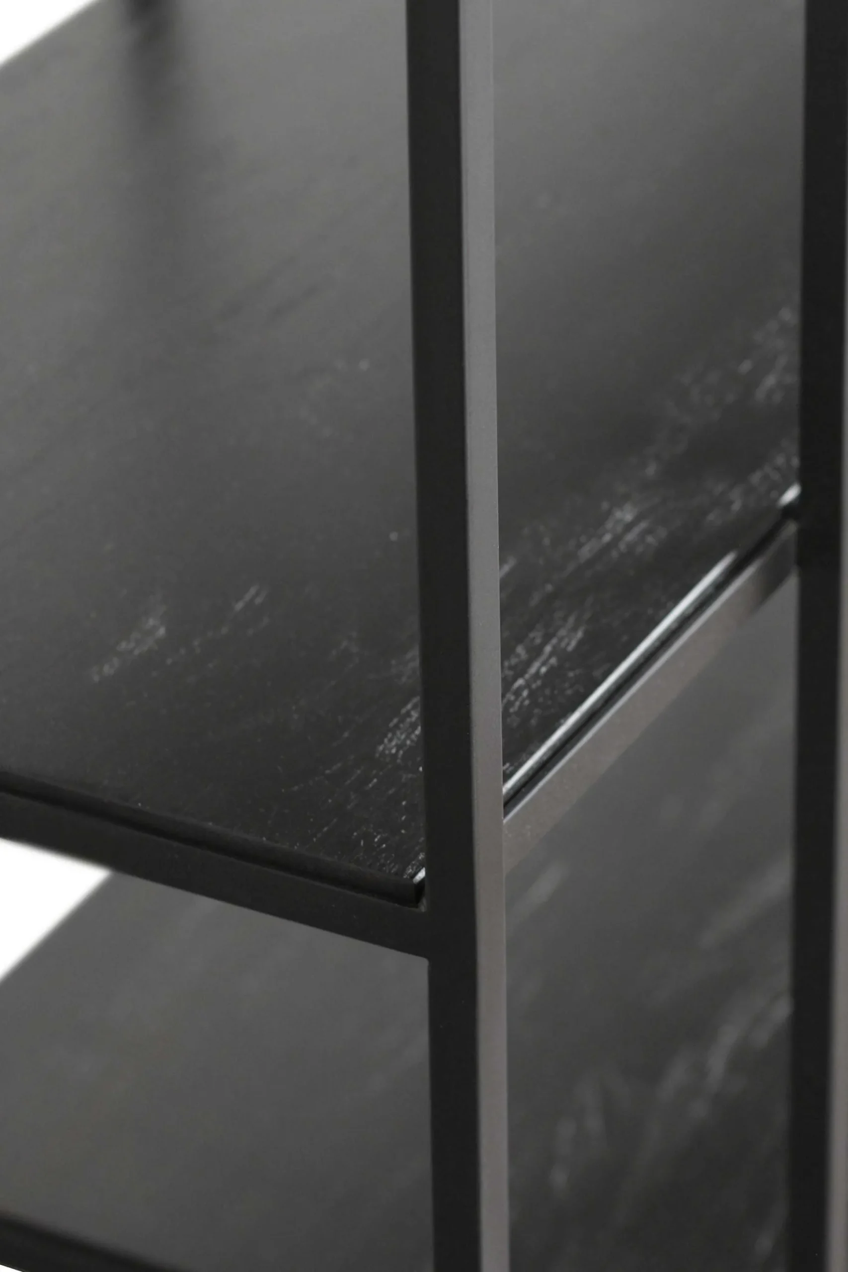 - Made from black tainted solid teak with a varnish finish and a black metal frame.