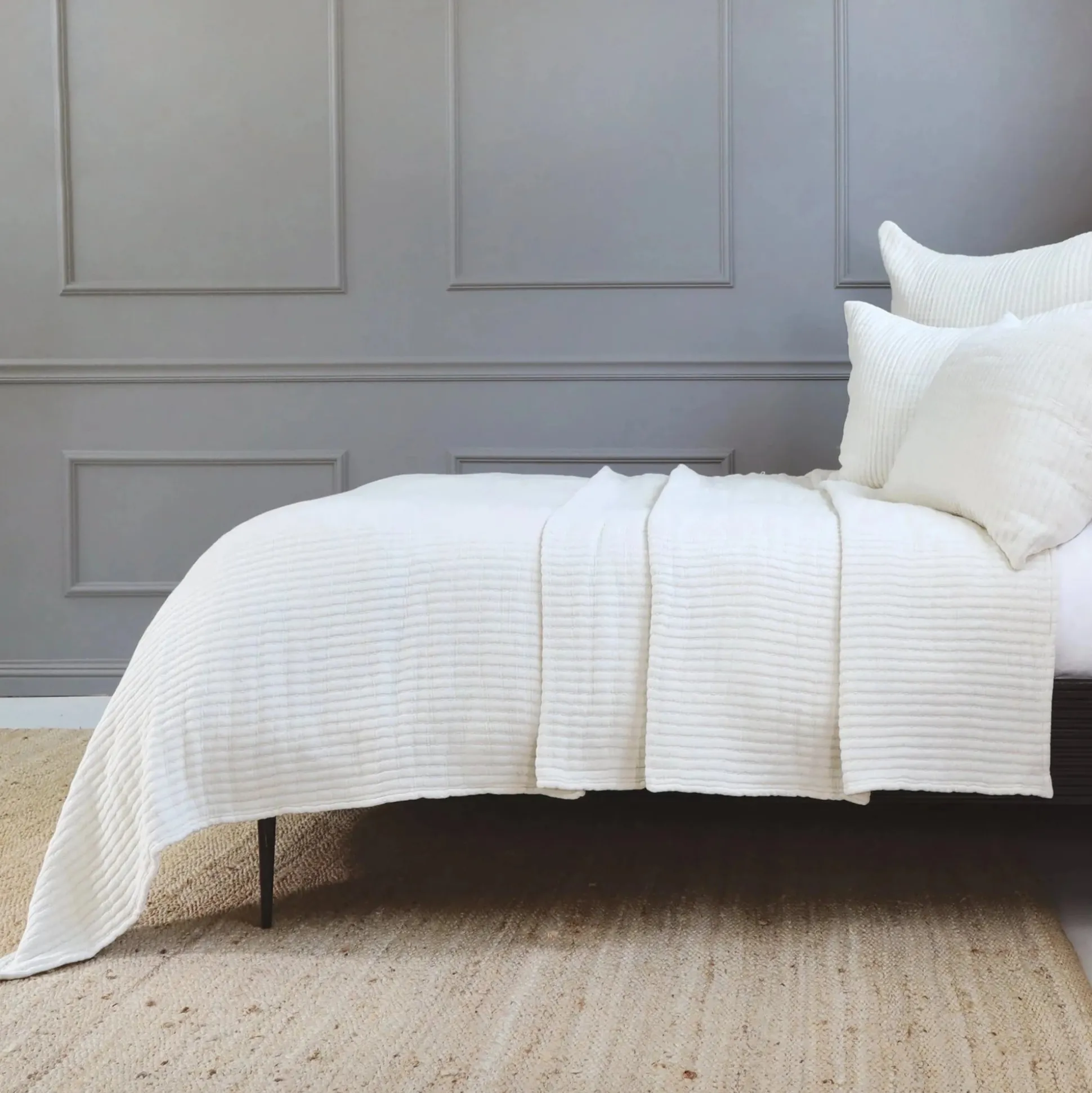 Introduce a touch of texture to your bedroom with the Vancouver Coverlet series. Meticulously crafted from lightweight stonewashed cotton gauze with a woven ivory stripe, this collection is the ideal accompaniment to your sleeping space, evoking feelings of tranquility. Cotton Fill.