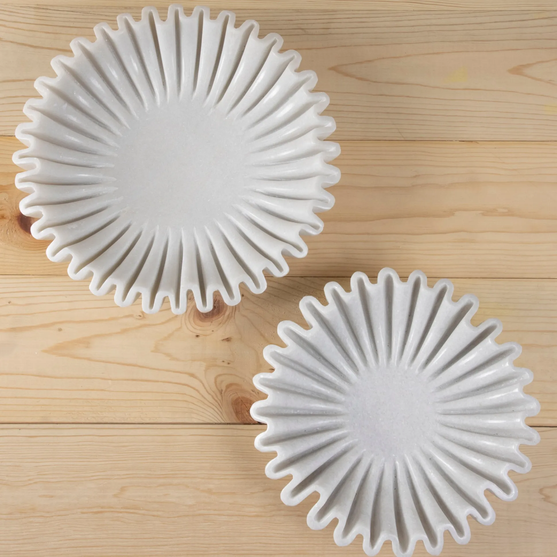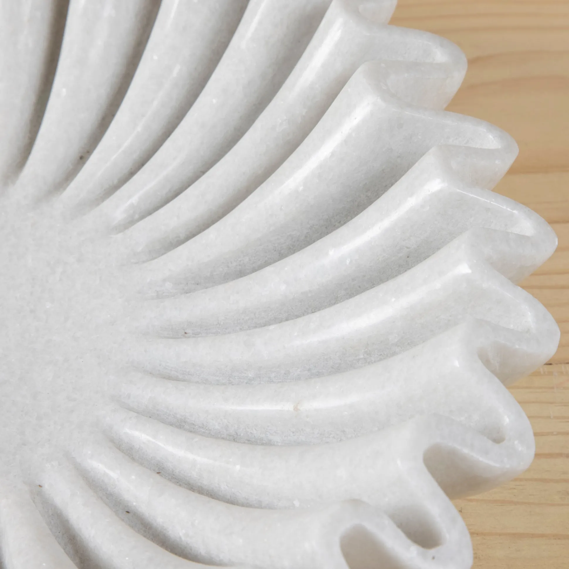 Our Waterloo collection is oh-so-wavy! Adorned with elegant flutes at every turn, these dazzling white marble bowls are an eye-catching accent to any room. Their weighty feel and glistening appearance have an almost esoteric appeal, with every piece containing its own set of natural tonal striations. At Be Home, our marble products are sourced from Agra, home of the Taj Mahal otherwise known as one of the world’s great marble masterpieces. Each piece has been crafted by a pair of hands before finding itself in yours.