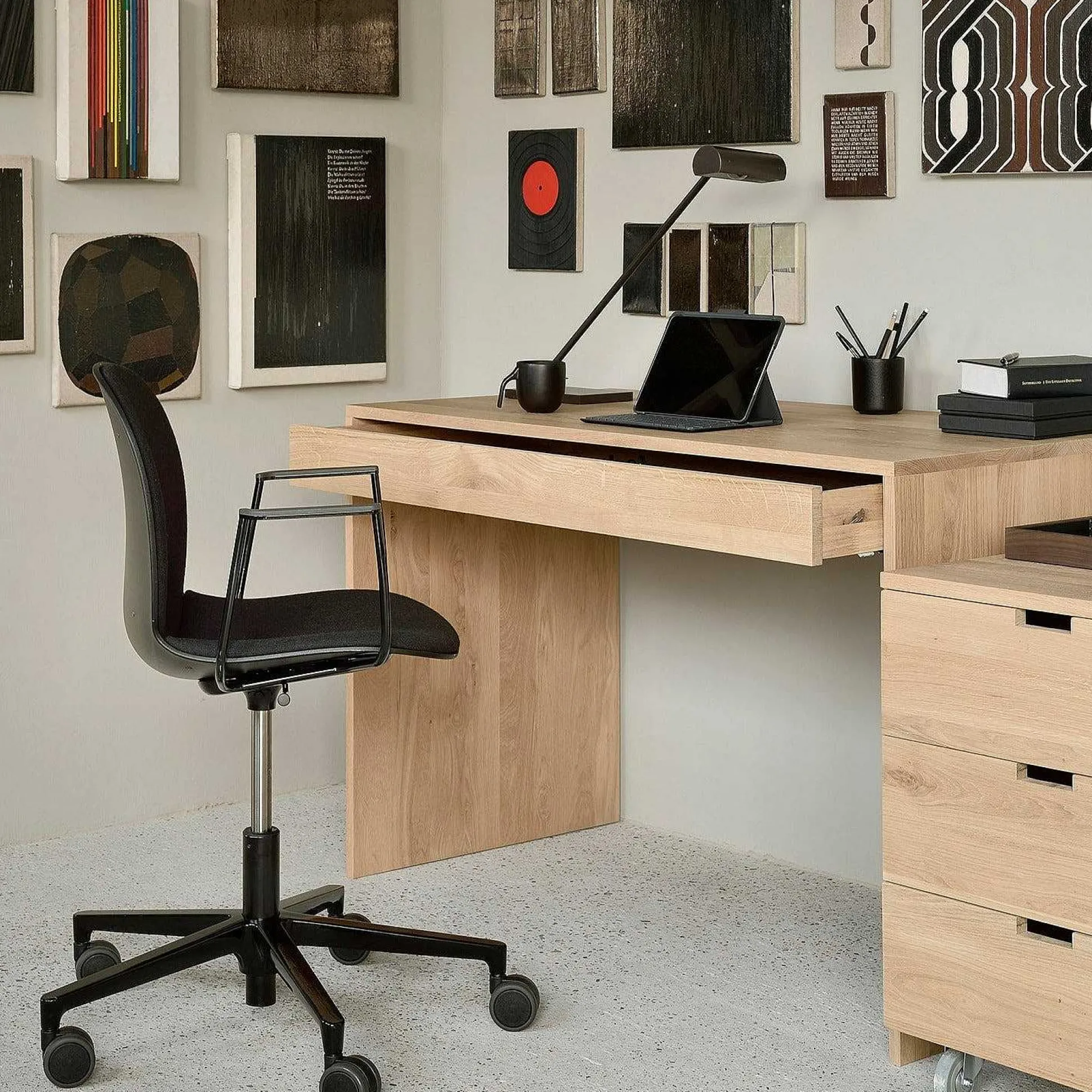 Add some warmth to your home office space with the Wave desk. Made of solid wood, this desk features one push open drawer.