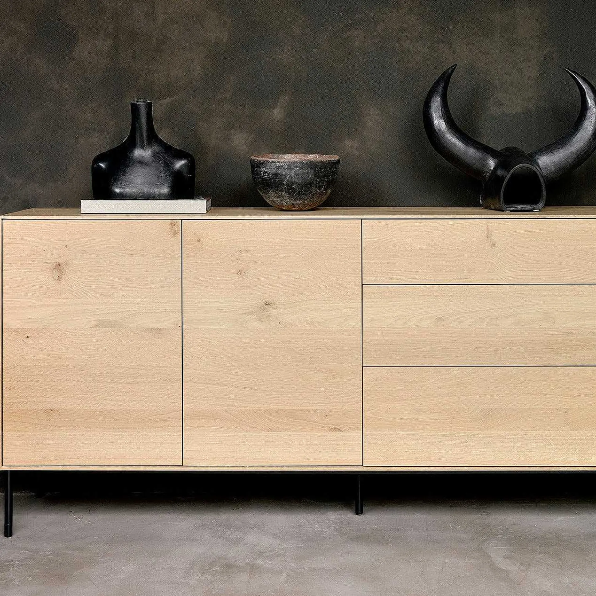 - This Whitebird sideboard features 2 push open doors and 3 push open drawers.