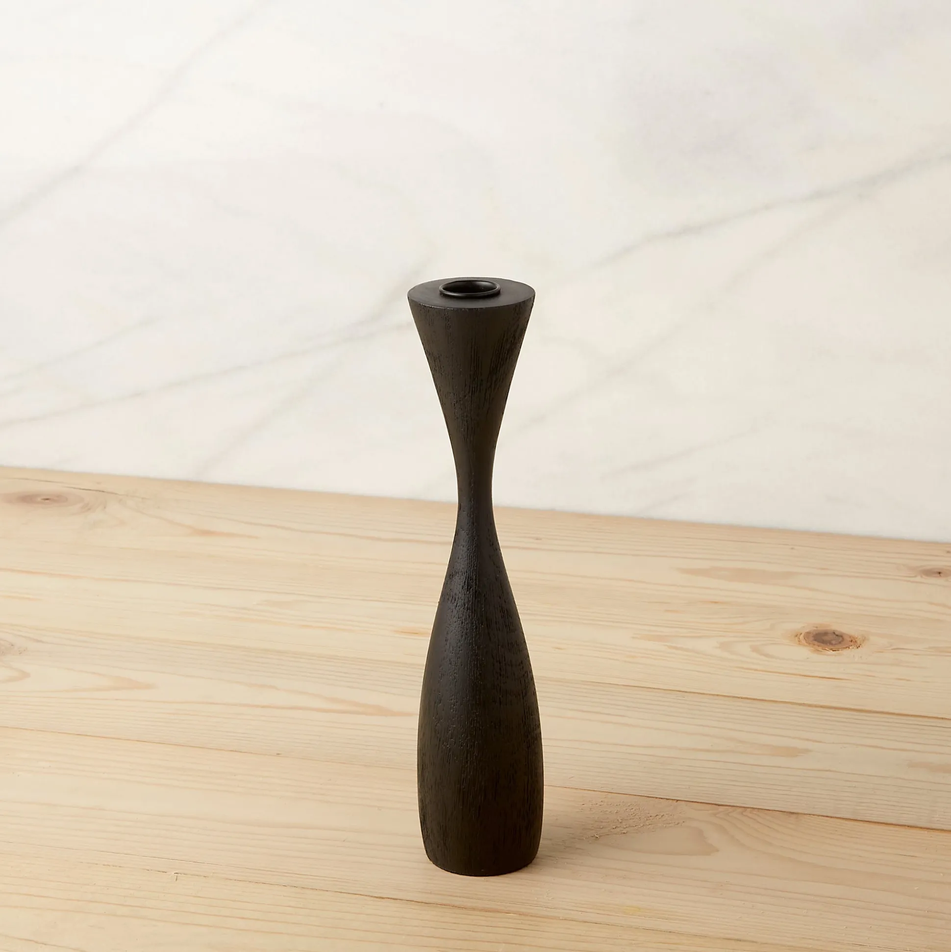 With our black mango wood collection, a bit of contrast goes a long way making them a bold addition to any plating. Handcrafted from protected groves in India, this dreamy candlestick holder boasts a darkened color palette, beautifully accenting its natural striations and subtle highlights.