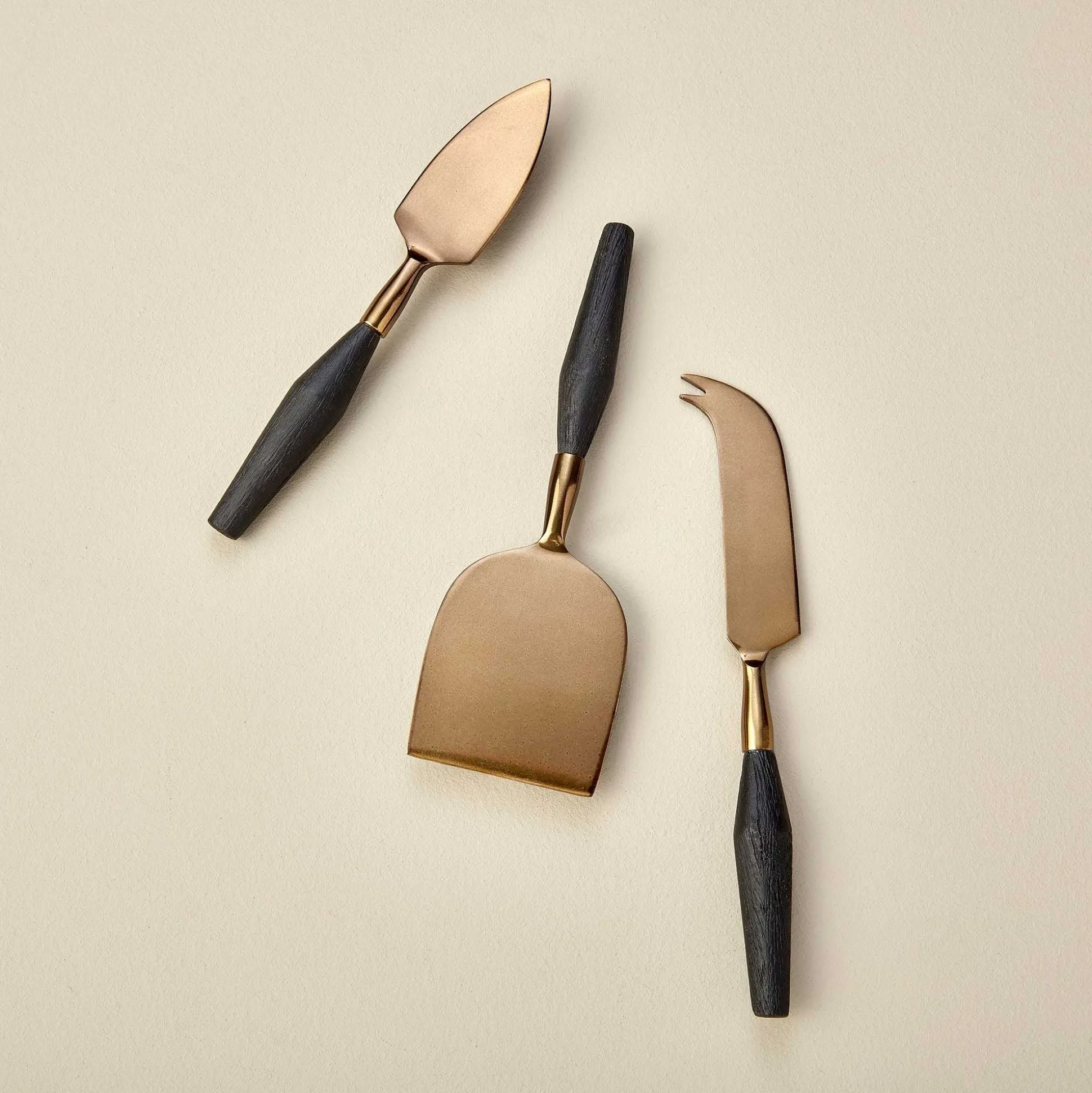 With our Arendal Cheese Knives, a bit of contrast goes a long way making them a bold addition to any table. Handcrafted from protected groves in India, this dreamy trio boasts a darkened color palette, beautifully accenting its natural striations and subtle highlights.