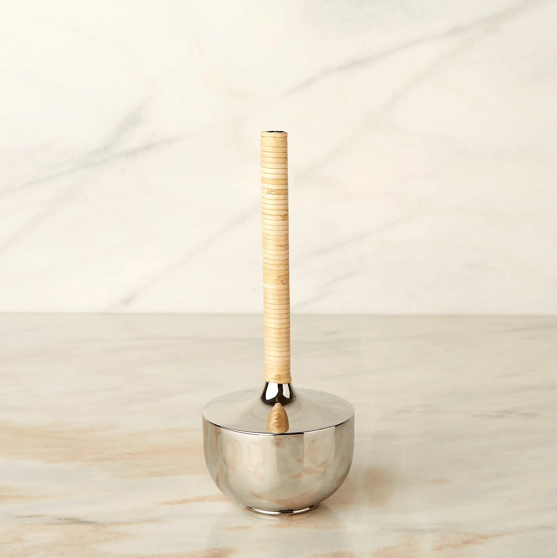 Our Arendal Rattan bud vases are the perfect accent to black mango wood, creating a textural contrast that makes a bold yet elegant statement. Pair with the flora of your choice or simply add to a shelving display as-is for a sculptural aesthetic. Each piece is crafted by expert artisans in India and assembled by hand to effortlessly pair with our Arendal Rattan Serving Tray.