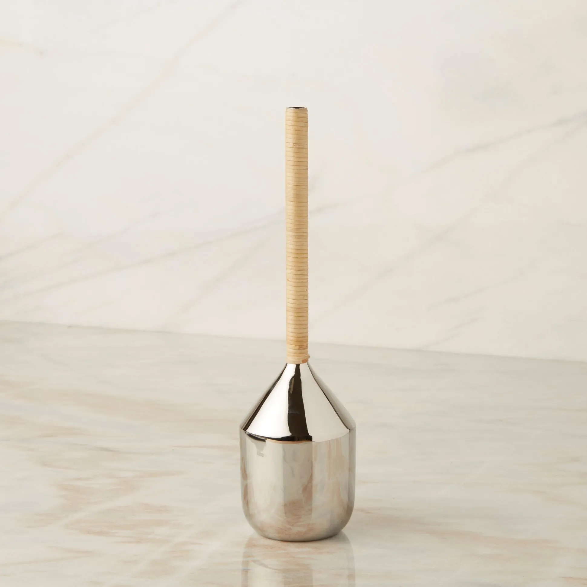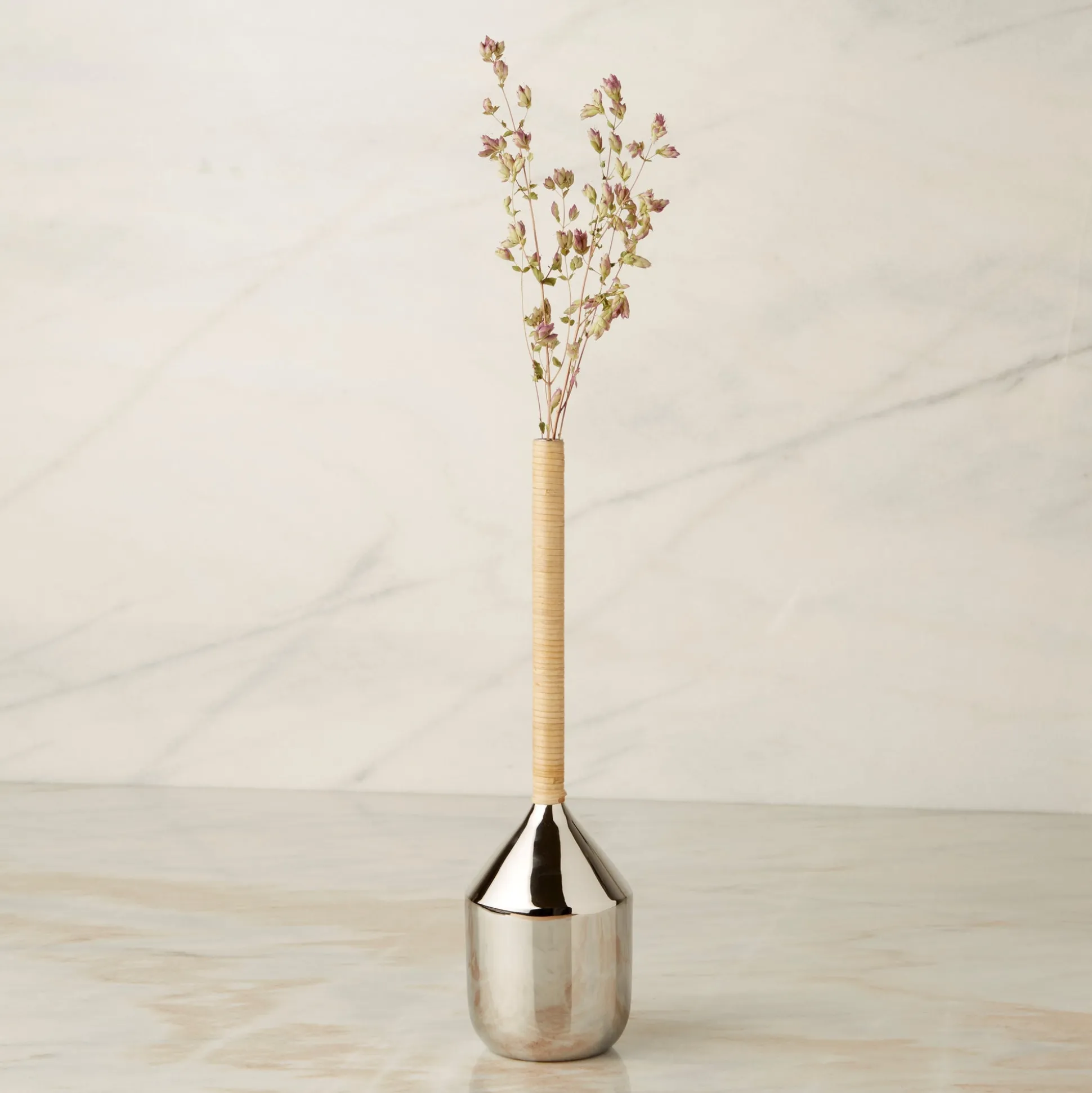 Our Arendal Rattan bud vases are the perfect accent to black mango wood, creating a textural contrast that makes a bold yet elegant statement. Pair with the flora of your choice or simply add to a shelving display as-is for a sculptural aesthetic. Each piece is crafted by expert artisans in India and assembled by hand to effortlessly pair with our Arendal Rattan Serving Tray.