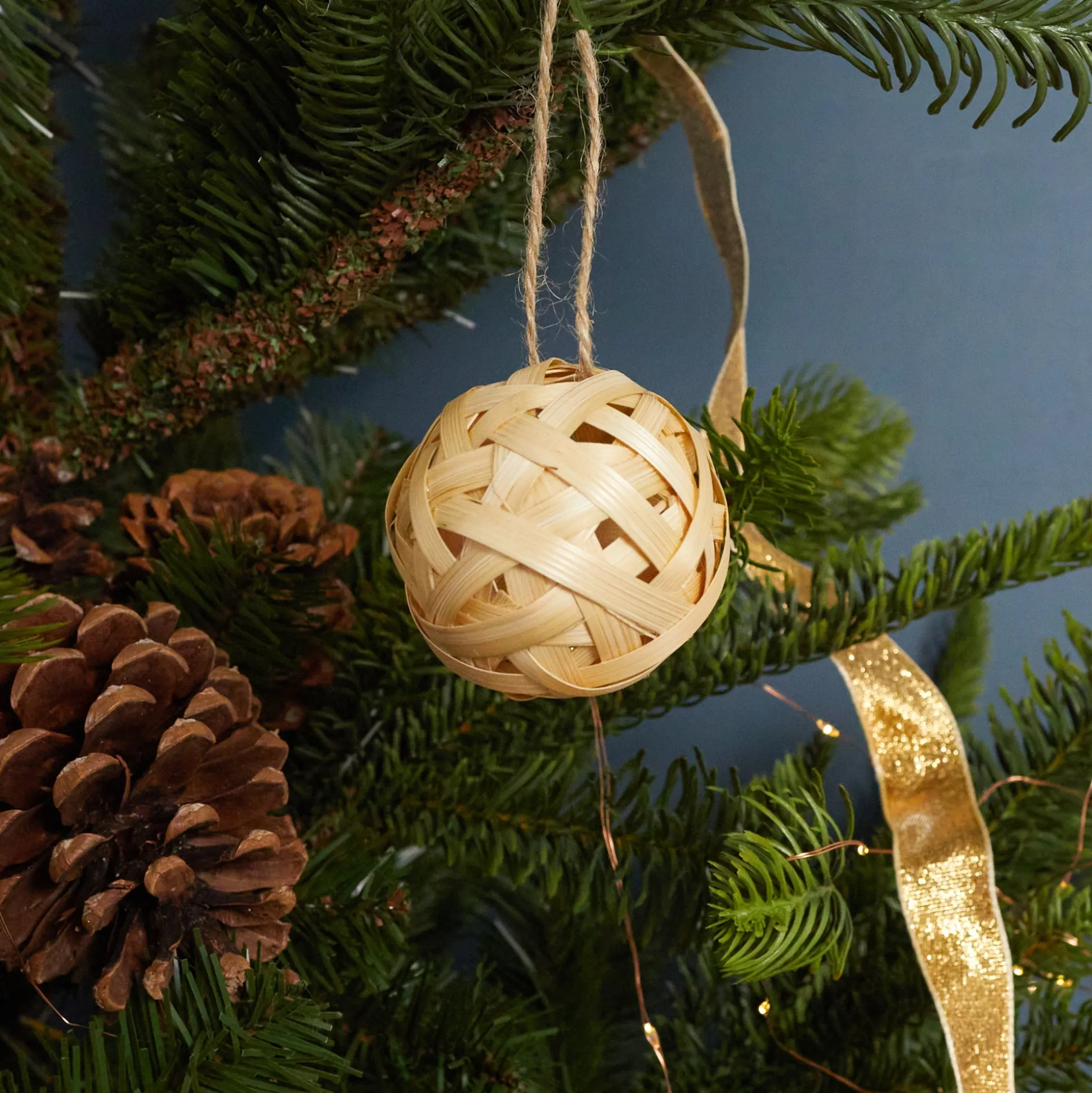 Add a bit of organic elegance to your holiday spread with our bamboo globe ornaments—perfect for trimming the tree or topping a gift this season. Each of our bamboo ornaments is woven by hand and ethically crafted in small batches by skilled artisans in Vietnam. Pair with our mango wood garland and pine ornaments for a complete, Earth-inspired look look.