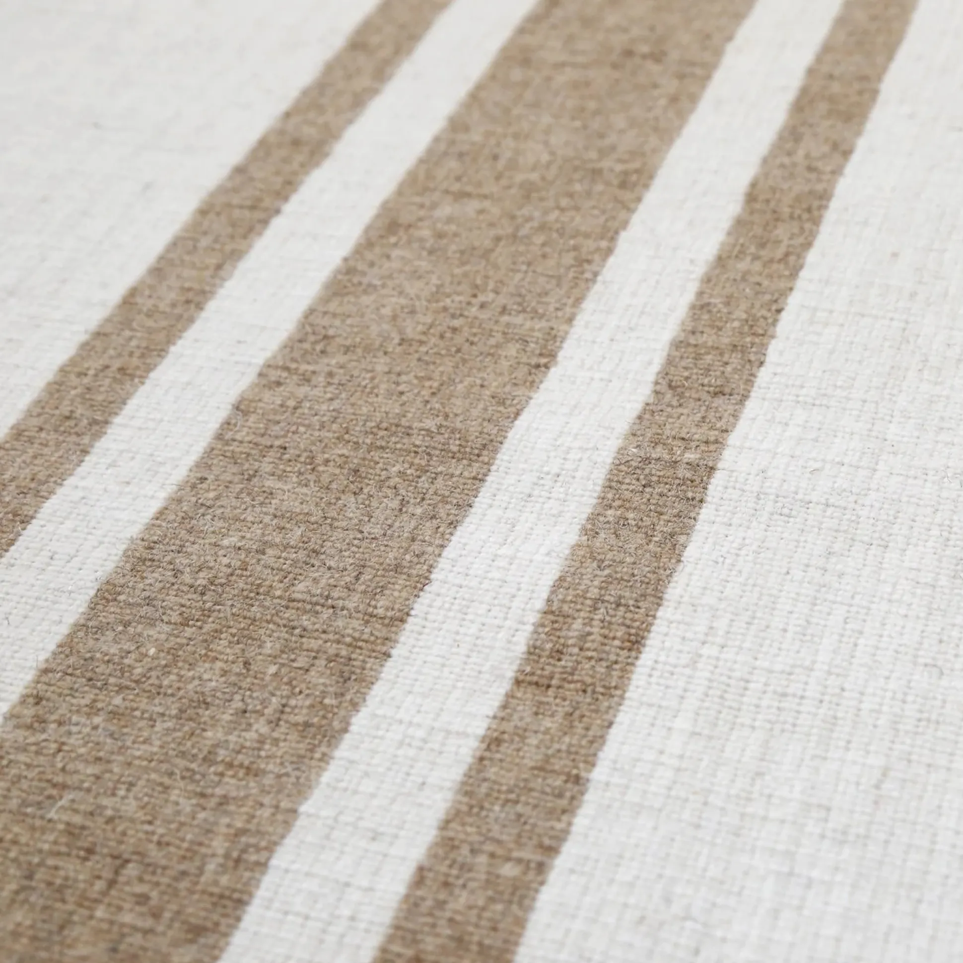 Our Beachwood rugs are beautiful in their simplicity with the contrasting stripe. The rug is hand made with a mixture of wool and jute. Its flat-weave construction is the perfect organic foundation for any design aesthetic.