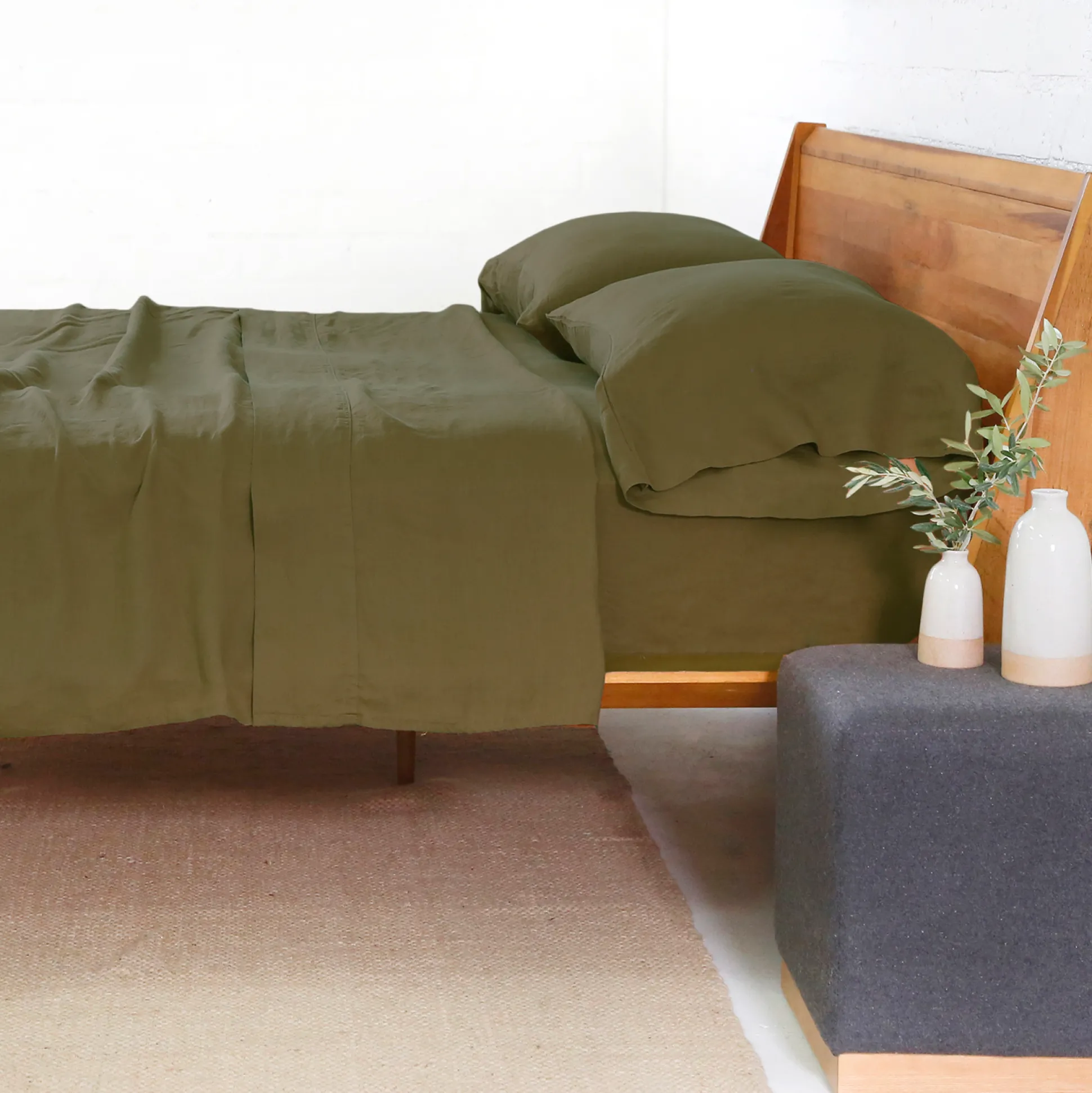 Belgian Linen King Sheet Set, Forest^Be Home Fashion