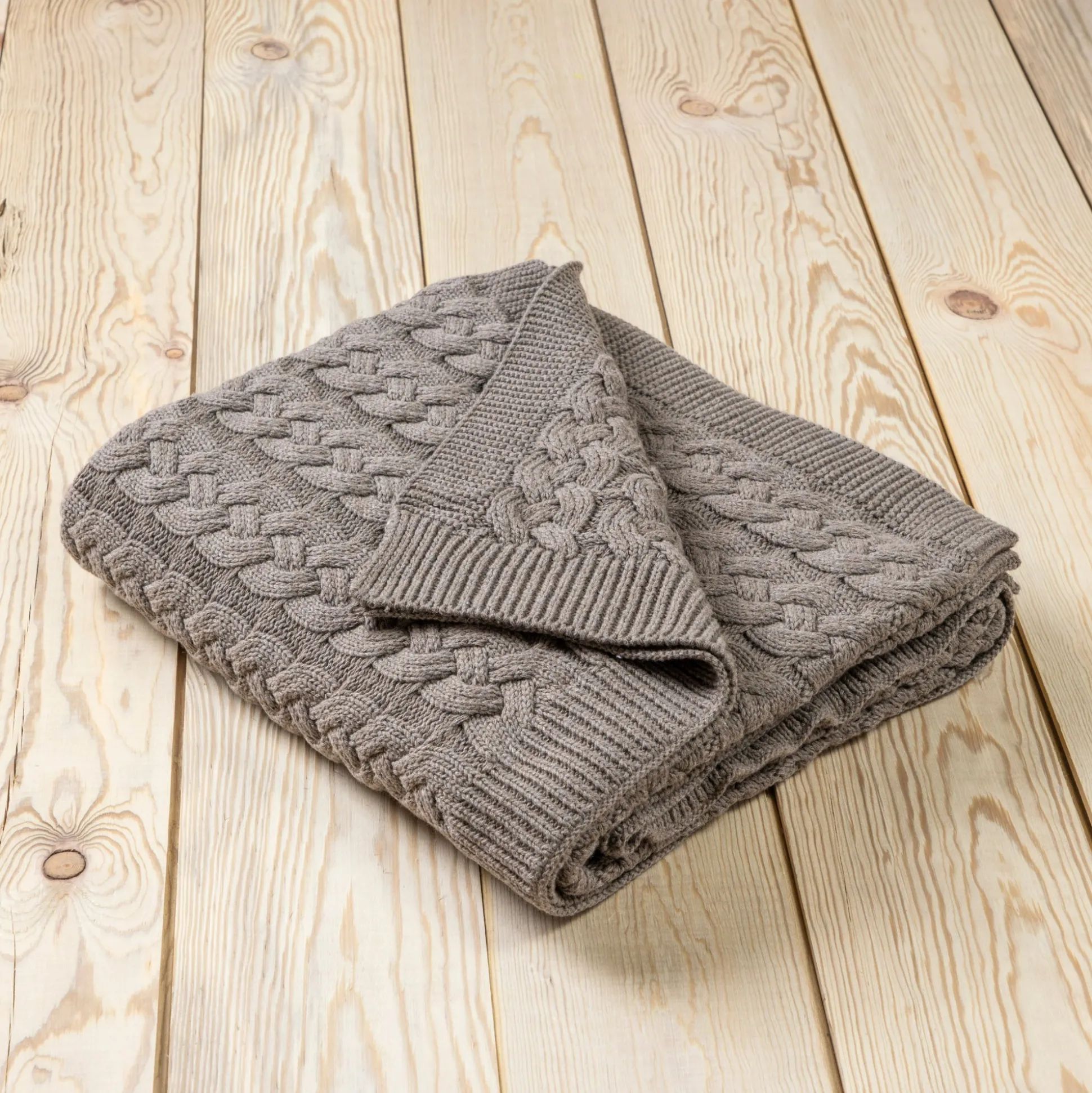 Belmont Double Cable Knit Throw, Brown^Be Home Fashion