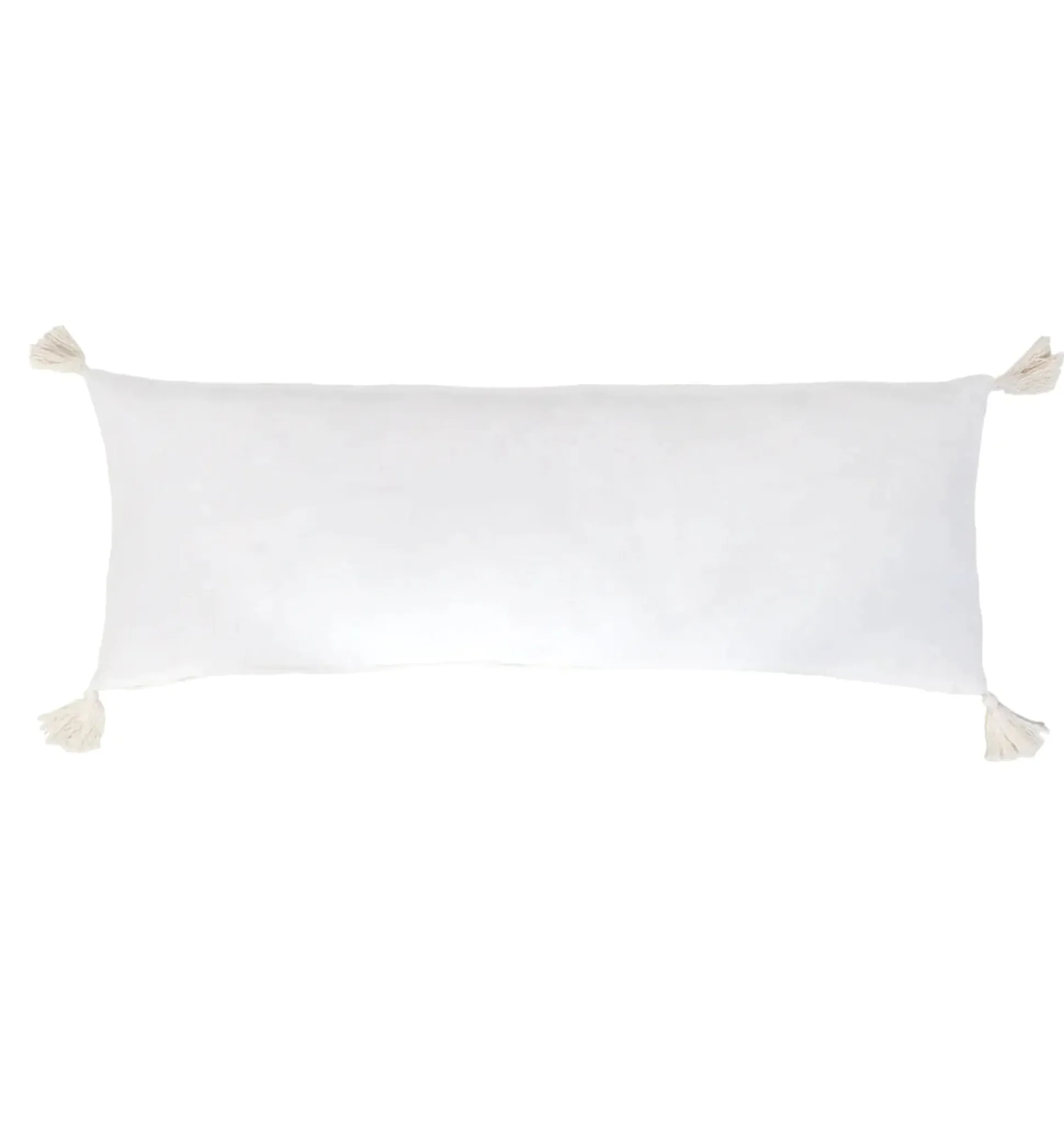 A sumptuously soft velvet rectangular pillow with dainty tassels on each corner.
