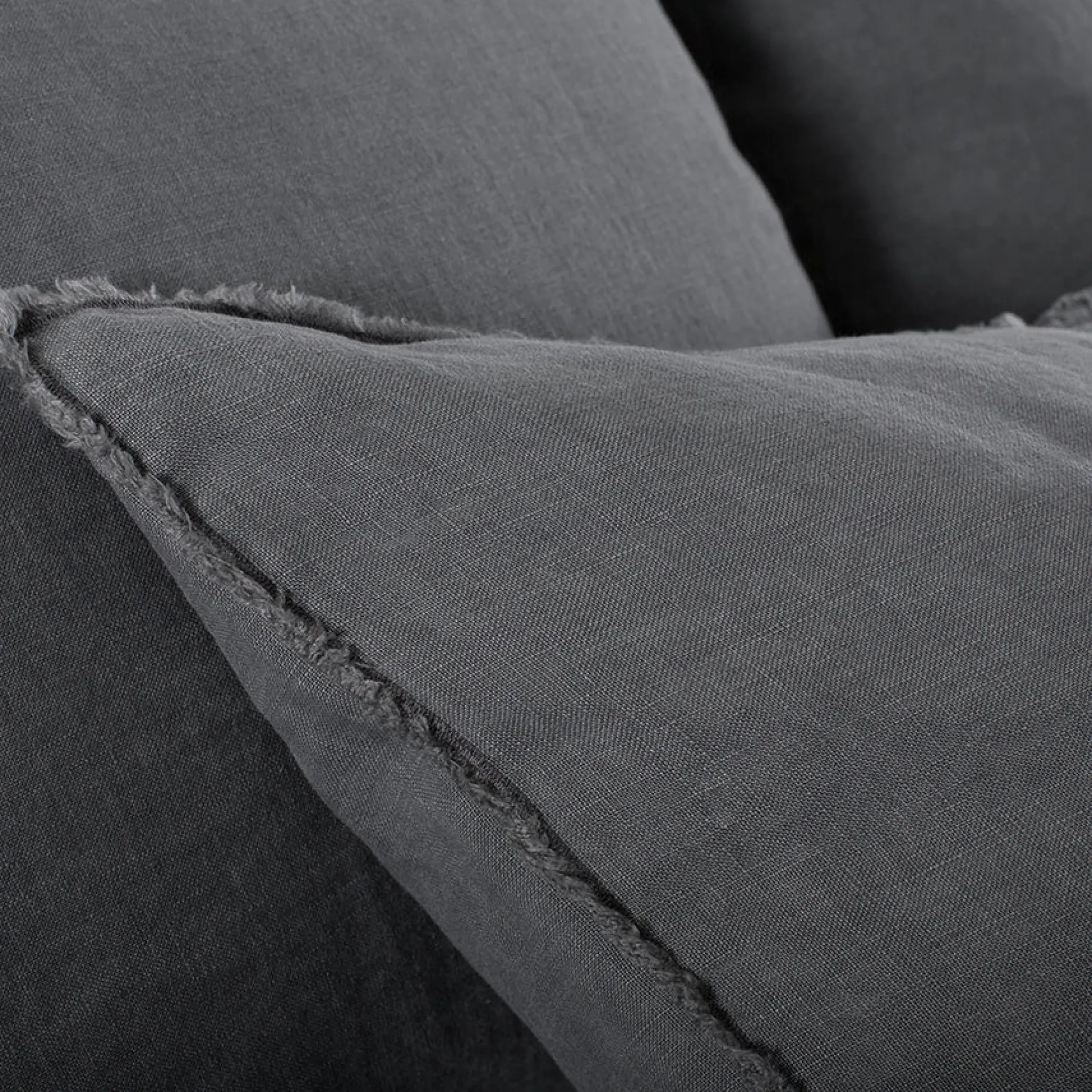 This collection is youthful and casual with subtle frayed edges. Made of 100% linen, the duvet cover and shams are finished with simple tie closures.