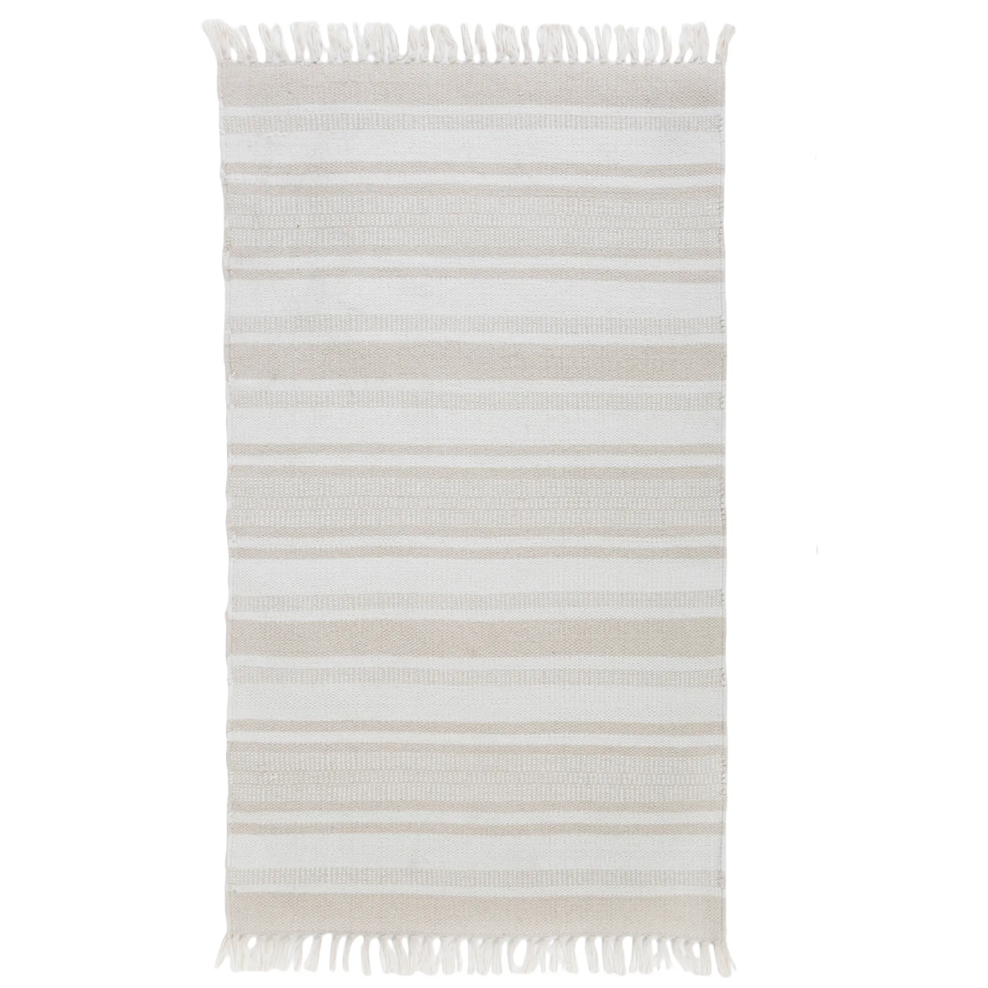 Handmade in India, this flat-weave rug is crafted from 100% cotton in your choice of two neutral colors. The Calypso features varying stripes and soft tassels on each edge. The soft pre-washed cotton adds cushioning to the floor, making it great underfoot. Perfect for casual interiors from coastal to contemporary.