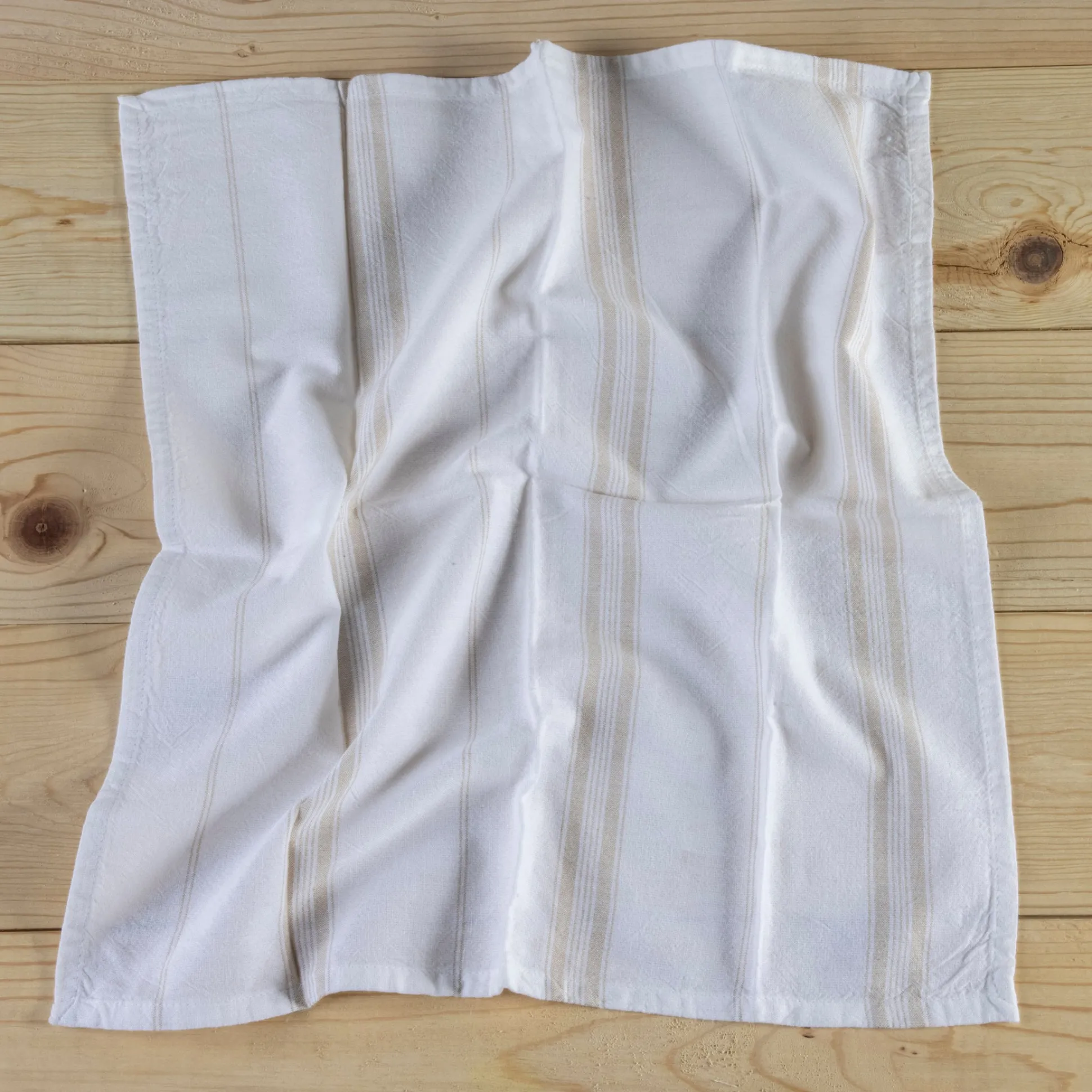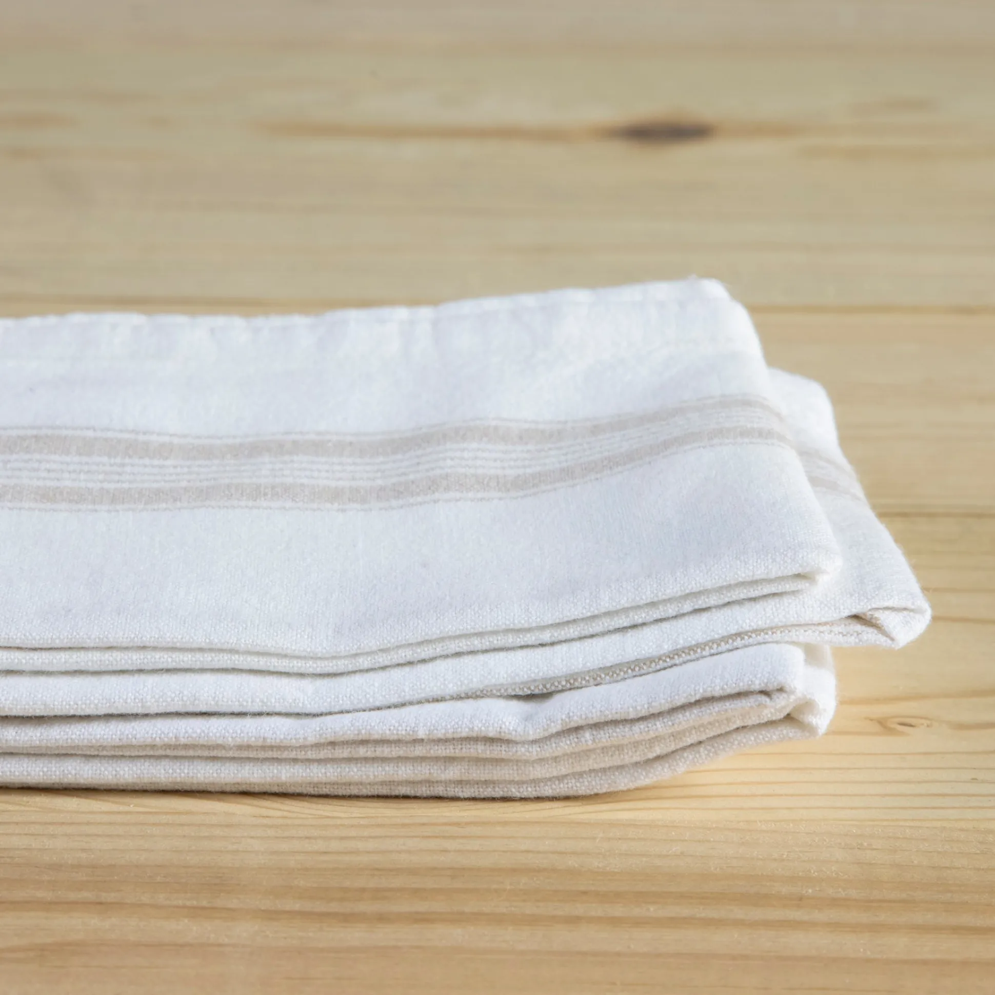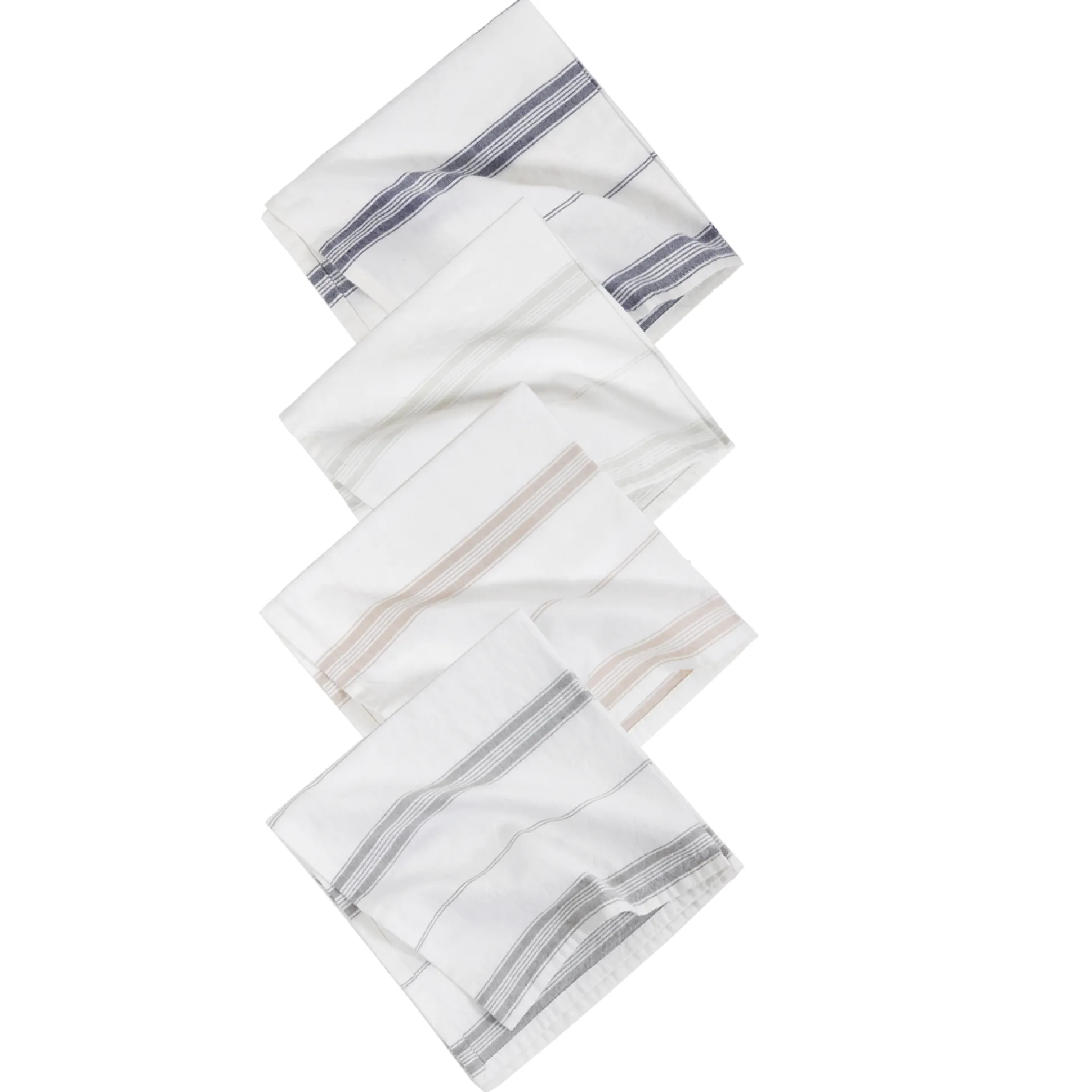 The Cambria napkins have a finished edge, white base cotton cloth with subtle colored stripes.