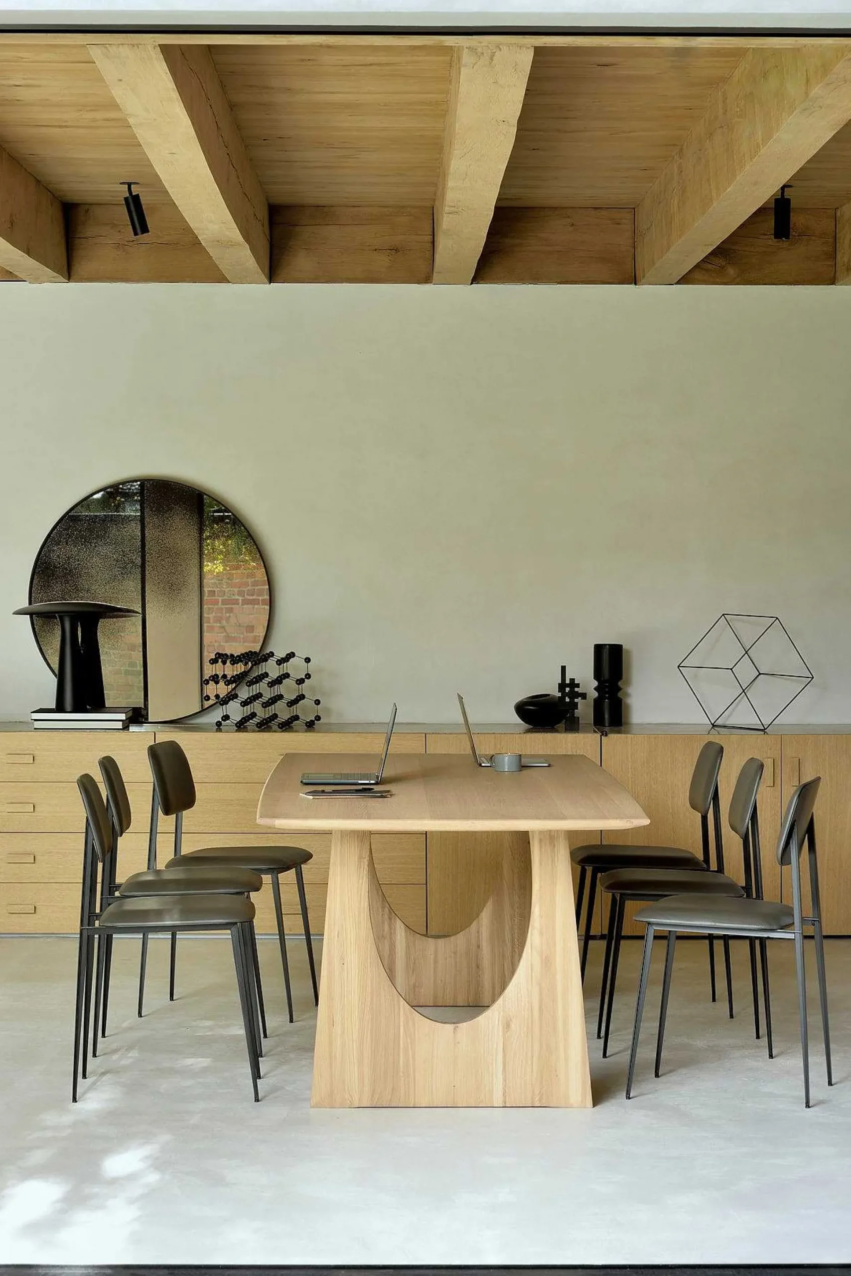 An airy and angular metal silhouette forms the basis of this minimalistic design. A balance between solidity and softness creates an elegant and comfortable dining chair that will fit in any interior.