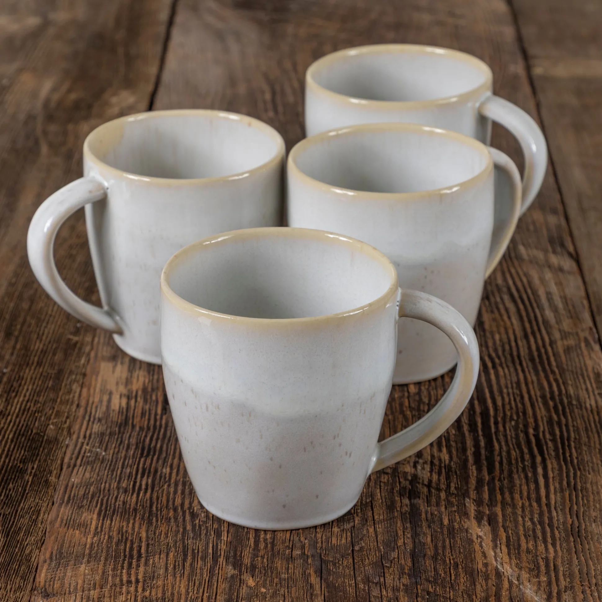 - Fine stoneware with reactive glaze.