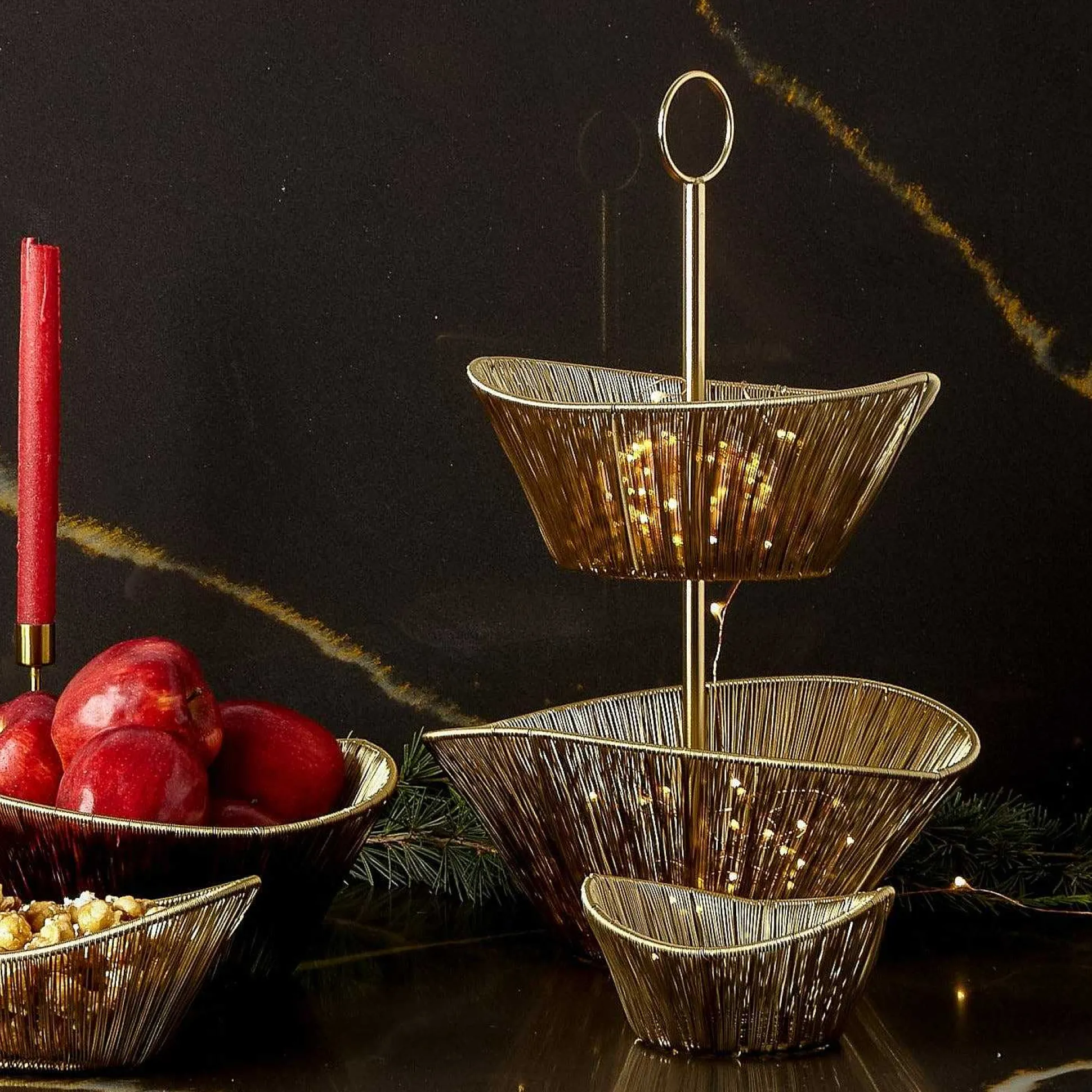 All that glitters may not be gold, but this beautiful two-tiered basket certainly is. Add a little sparkle to your home with our Luxe collection, featuring premium quality dining decor in your favorite shades of gold.