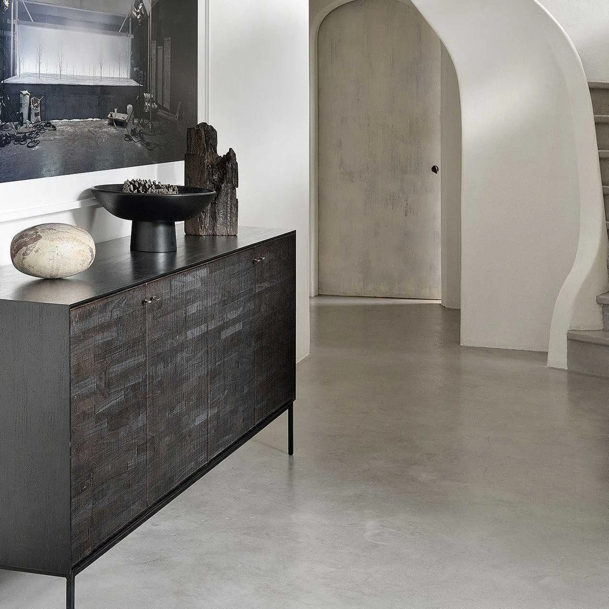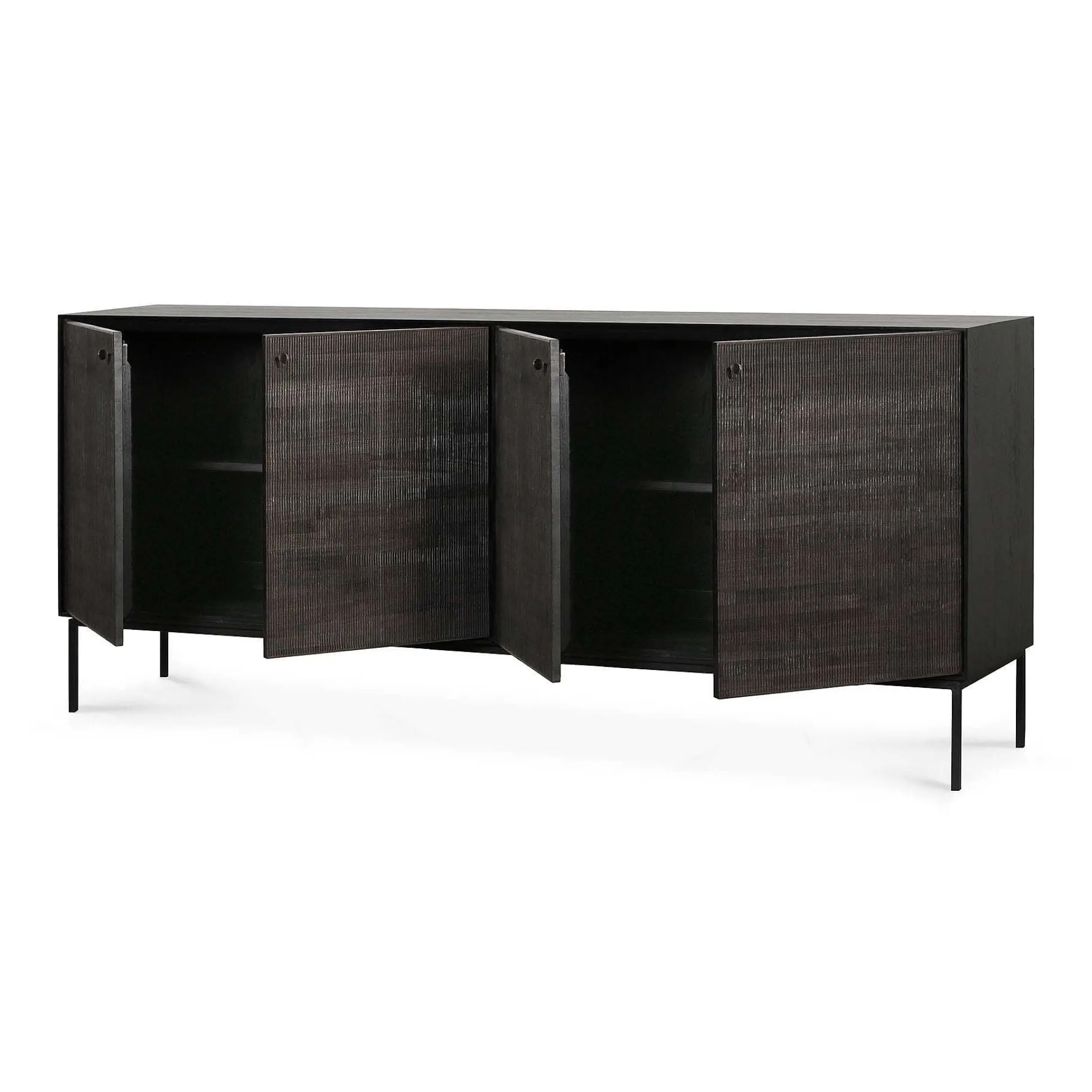 The Grooves sideboard is soulful to say the least. Every single line you see is hand carved, making each piece truly unique. Small imperfections are part of the story, even more so: they enhance Grooves’ character. The result is a slightly different surface every time, each with its own rhythm and dynamics. The beautiful dark tinted teak continues on the inside, where shelves and drawers will hold your most cherished objects.