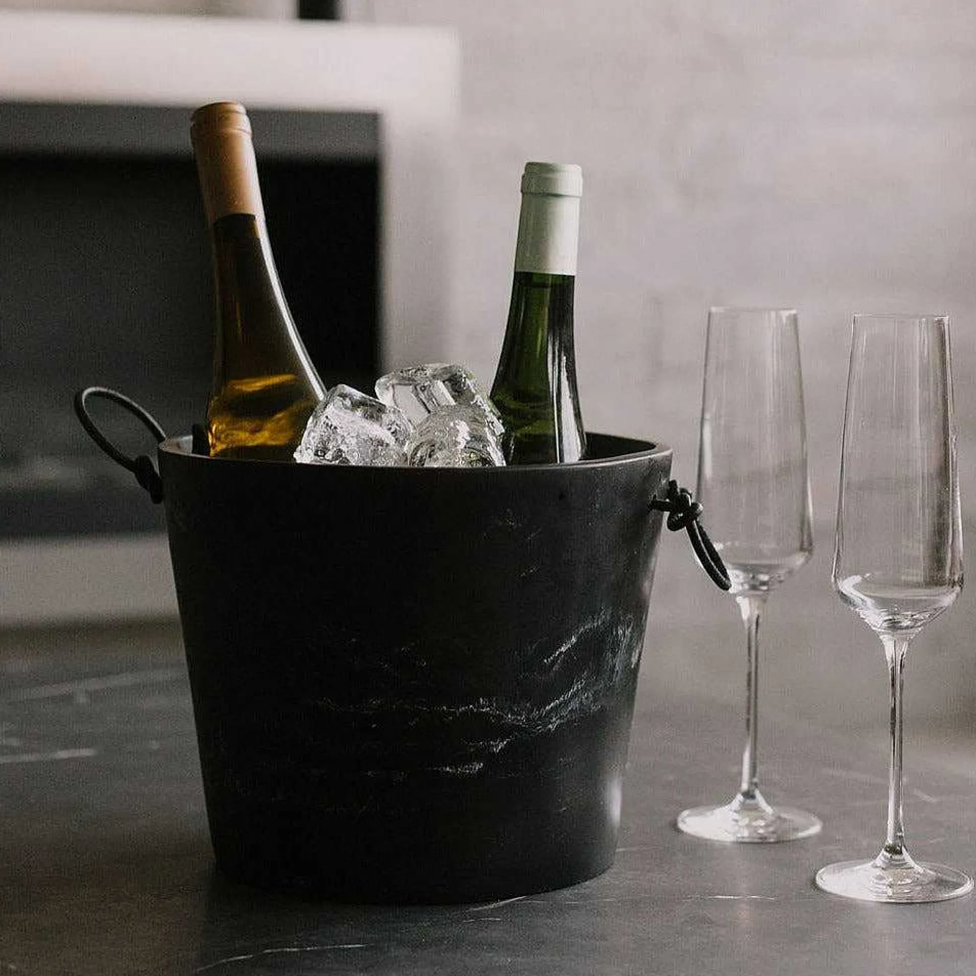 Handmade resin champagne bucket with leather handles. Perfect for chilling one or two bottles of wine. Wonderful for any celebratory occasion. Perfect for outdoor use.
