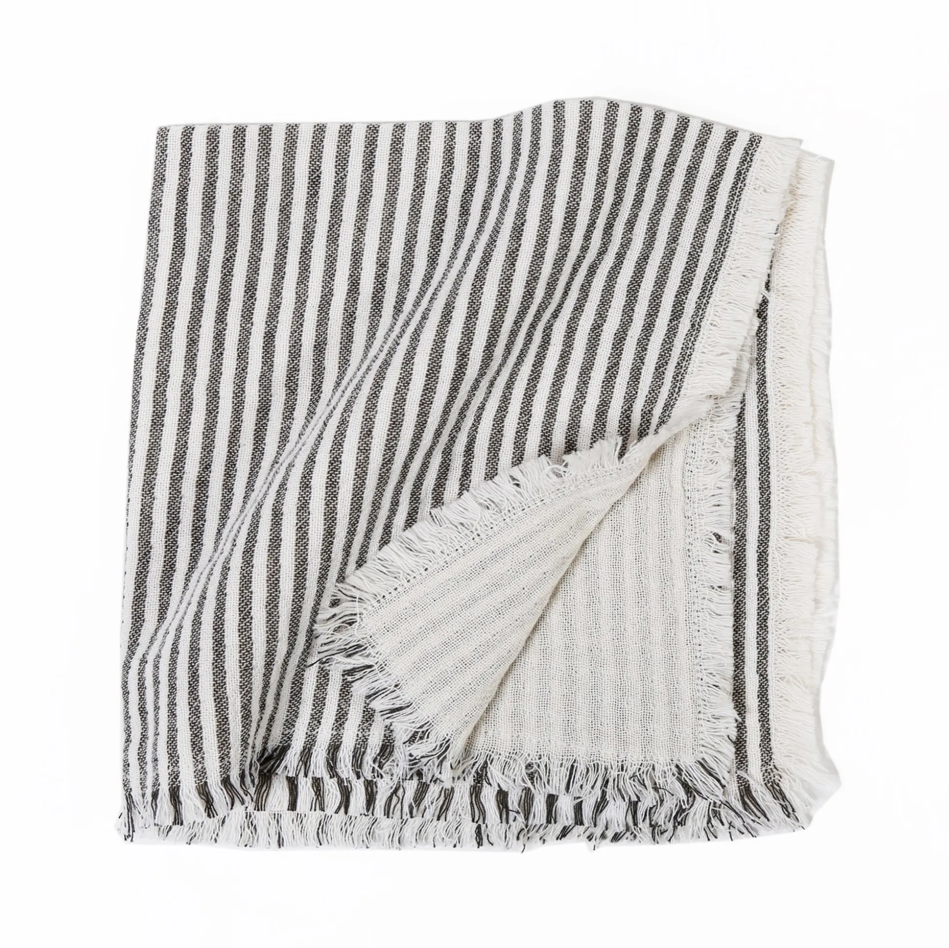 The Healdsburg napkins have a fringe edge and thin stripes.