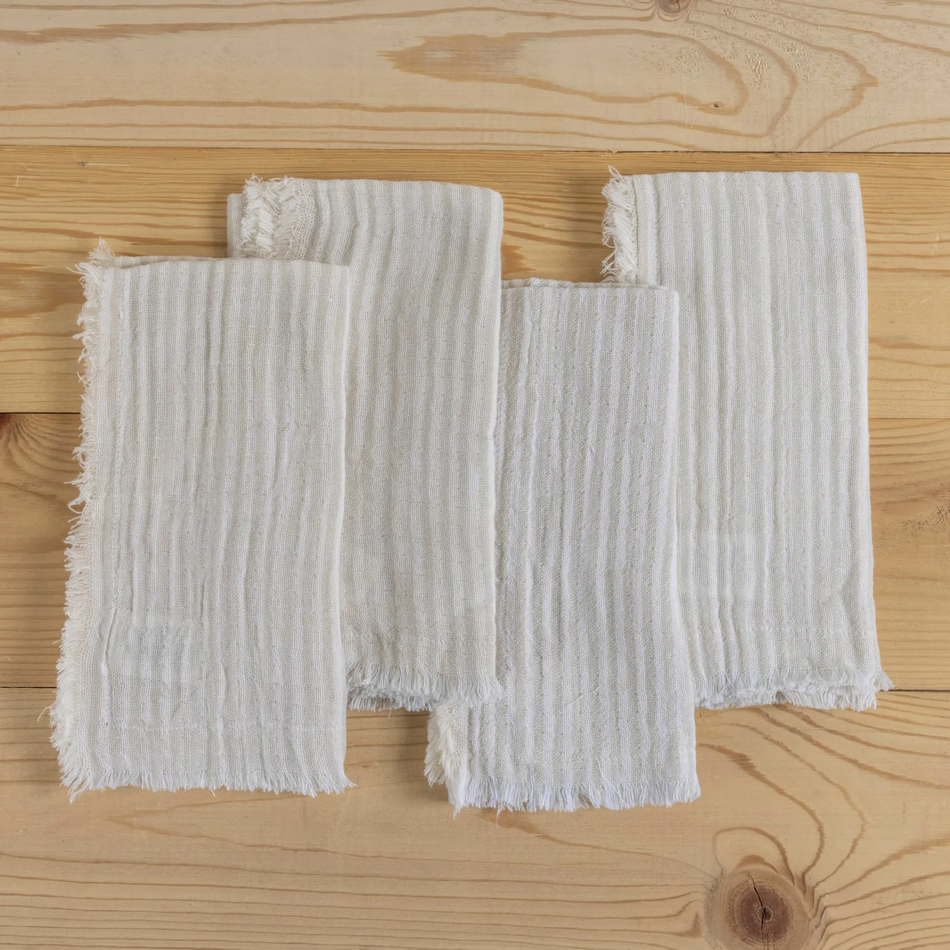 The Healdsburg napkins have a fringe edge and thin stripes.