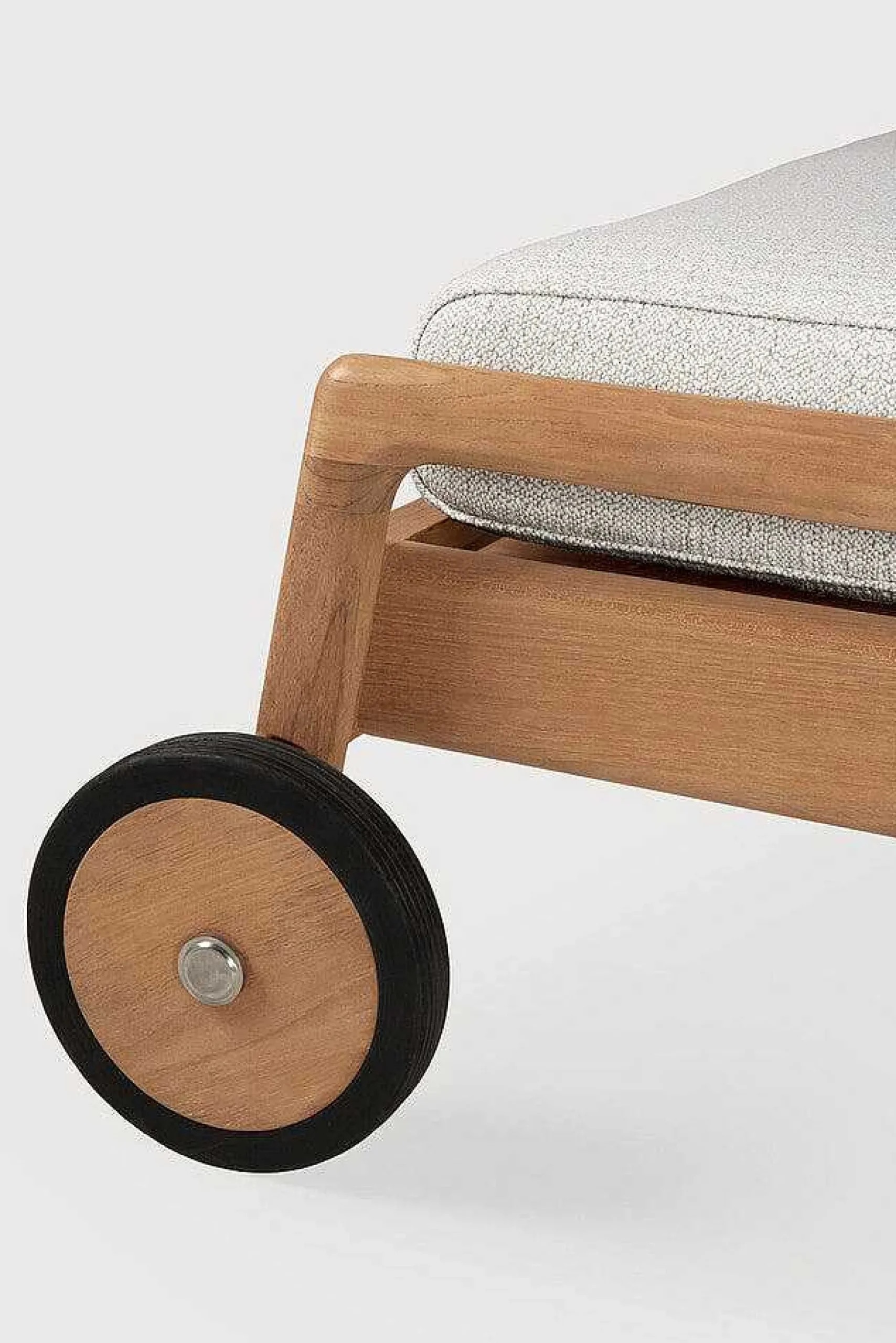 Jack Solid Teak Outdoor Adjustable Lounger, Off White Fabric