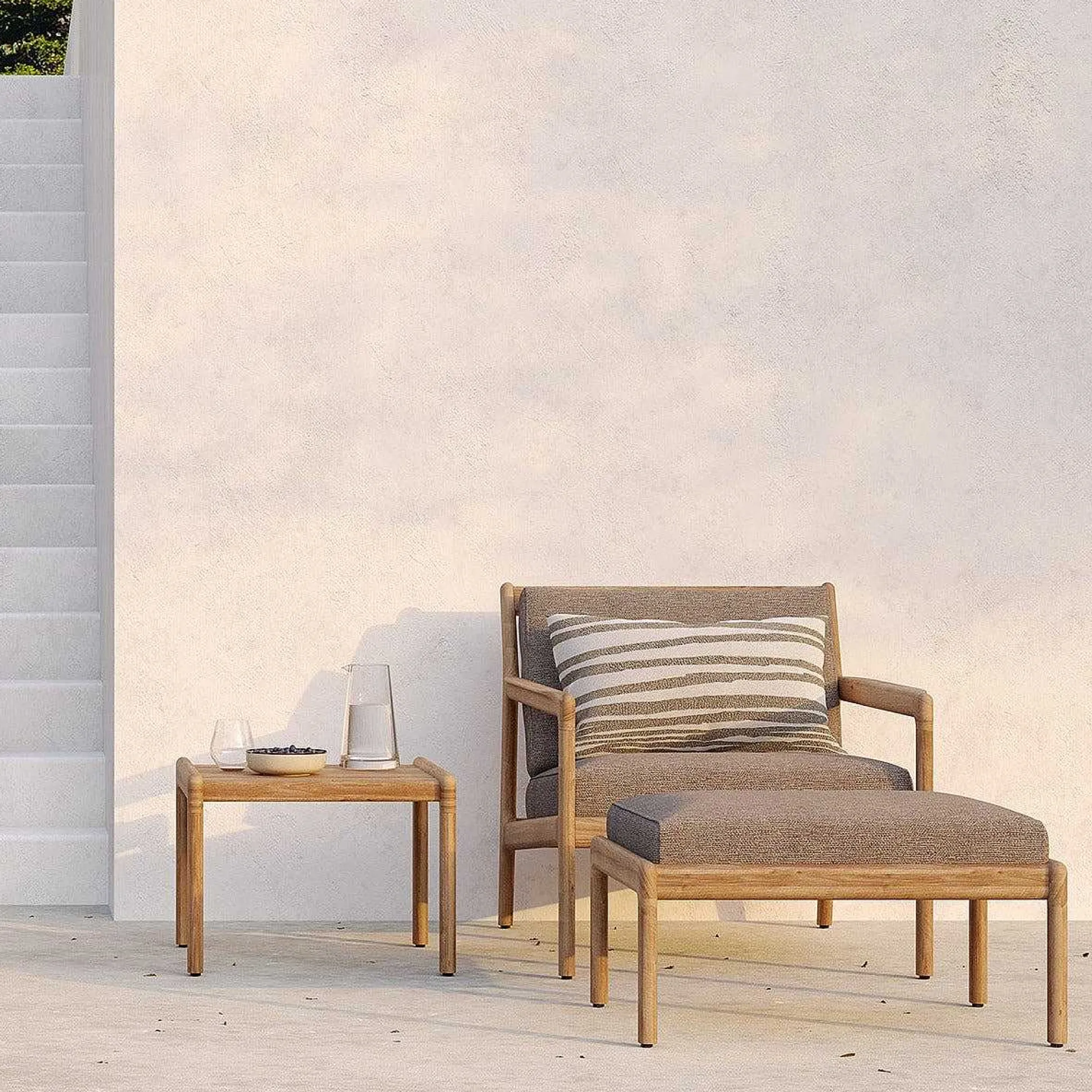 Jack Solid Teak Outdoor Lounge Chair, Mocha Fabric