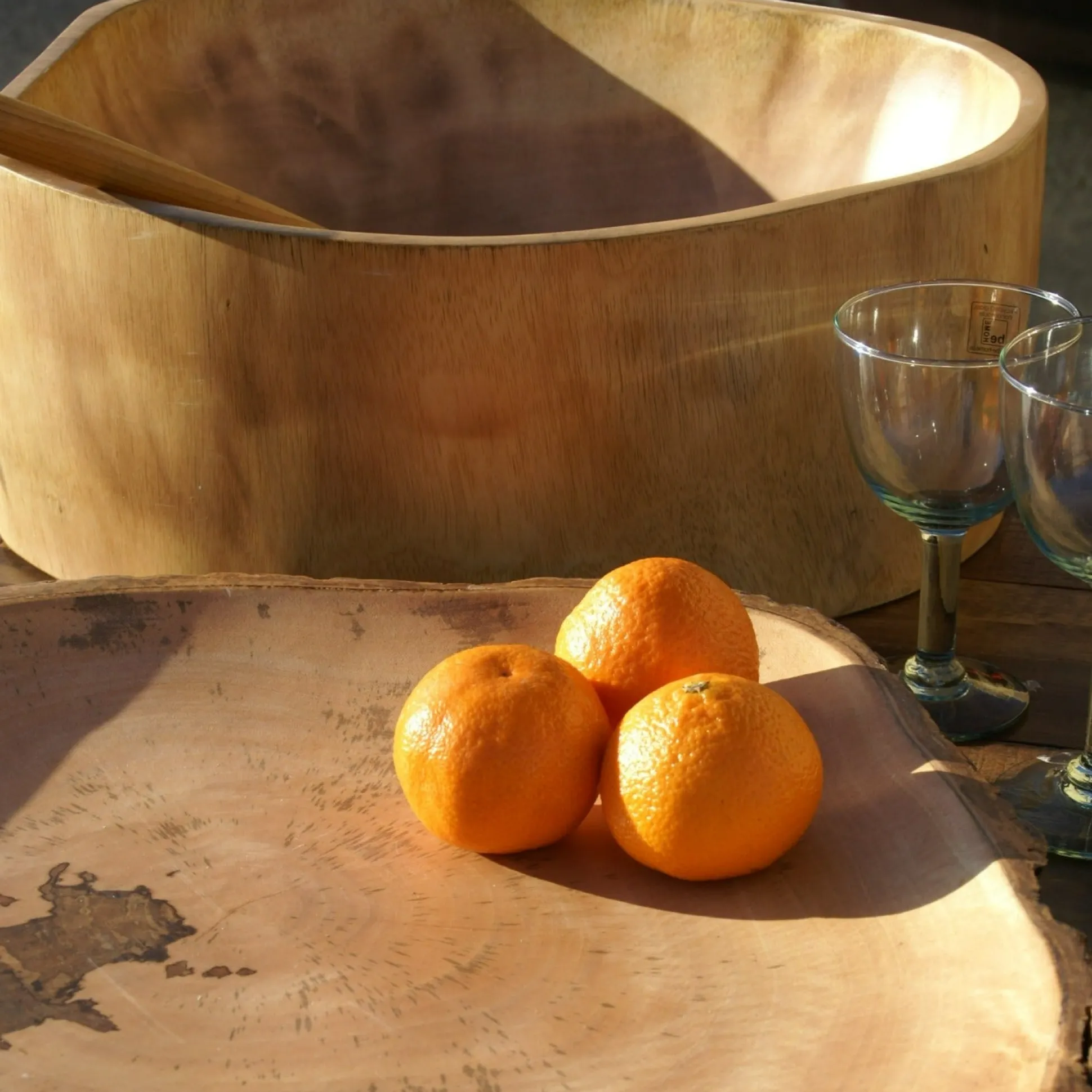 Serve your favorite salads, pastas, and sides in sleek style with our Extra Large Mango Wood Bowl. This organic masterpiece is handcrafted from beautifully aged mango wood, naturally infused by its own set of natural striations and subtle highlights.