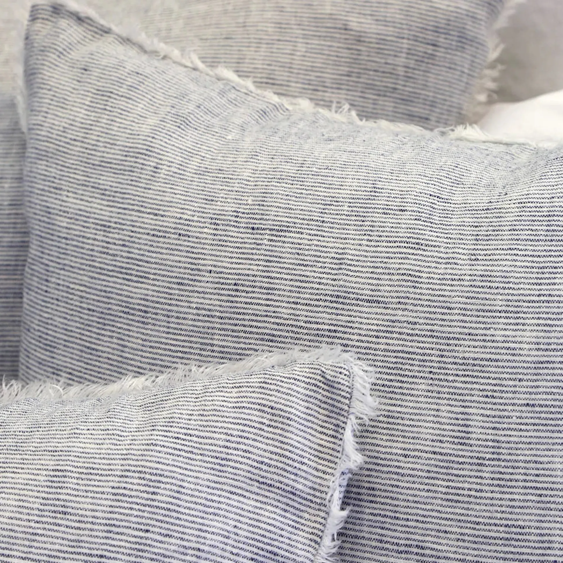 Subtle frayed edges of soft linen add a dash of unexpected detail to this Logan Collection. Woven with two different colored yarns for a heathered effect, the duvet cover and shams feature shell button closures.