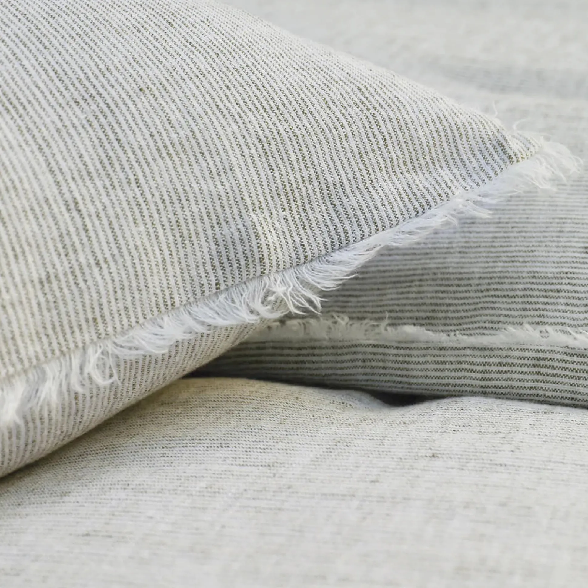 Subtle frayed edges of soft linen add a dash of unexpected detail to this Logan Collection. Woven with two different colored yarns for a heathered effect, the duvet cover and shams feature shell button closures.