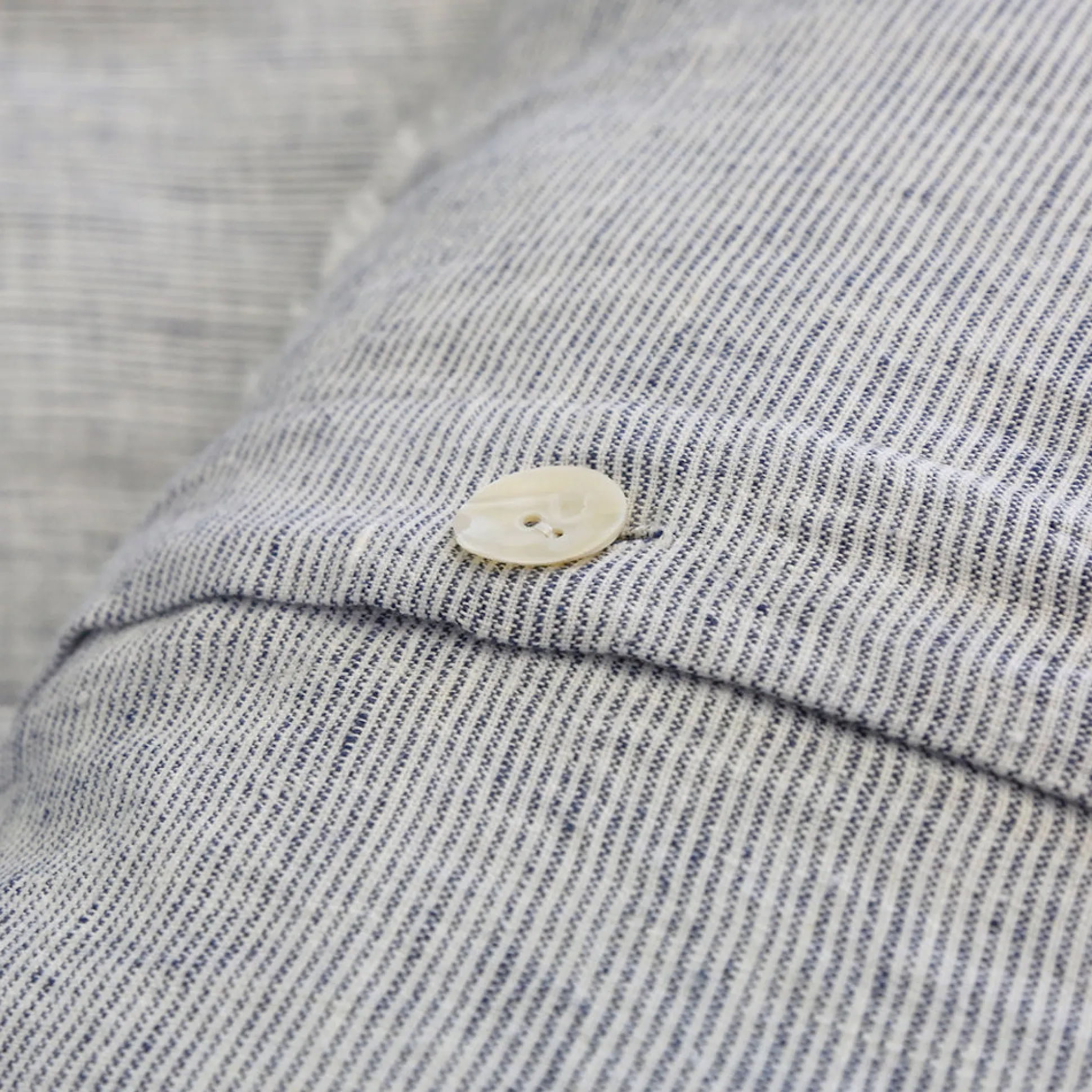 Subtle frayed edges of soft linen add a dash of unexpected detail to this Logan Collection. Woven with two different colored yarns for a heathered effect, the duvet cover and shams feature shell button closures.