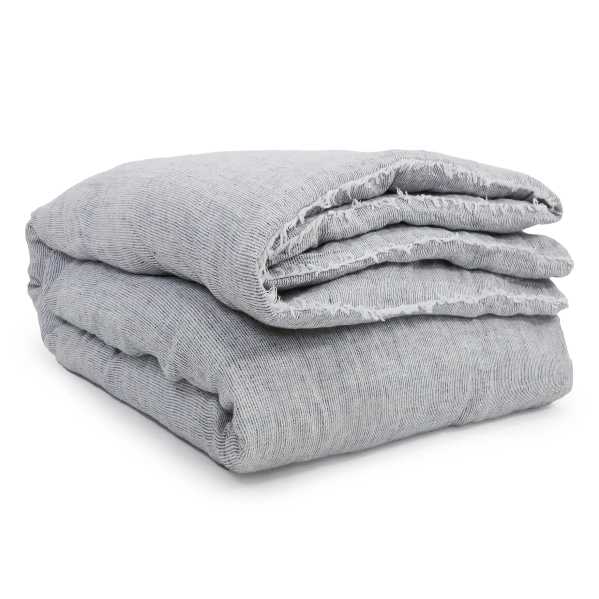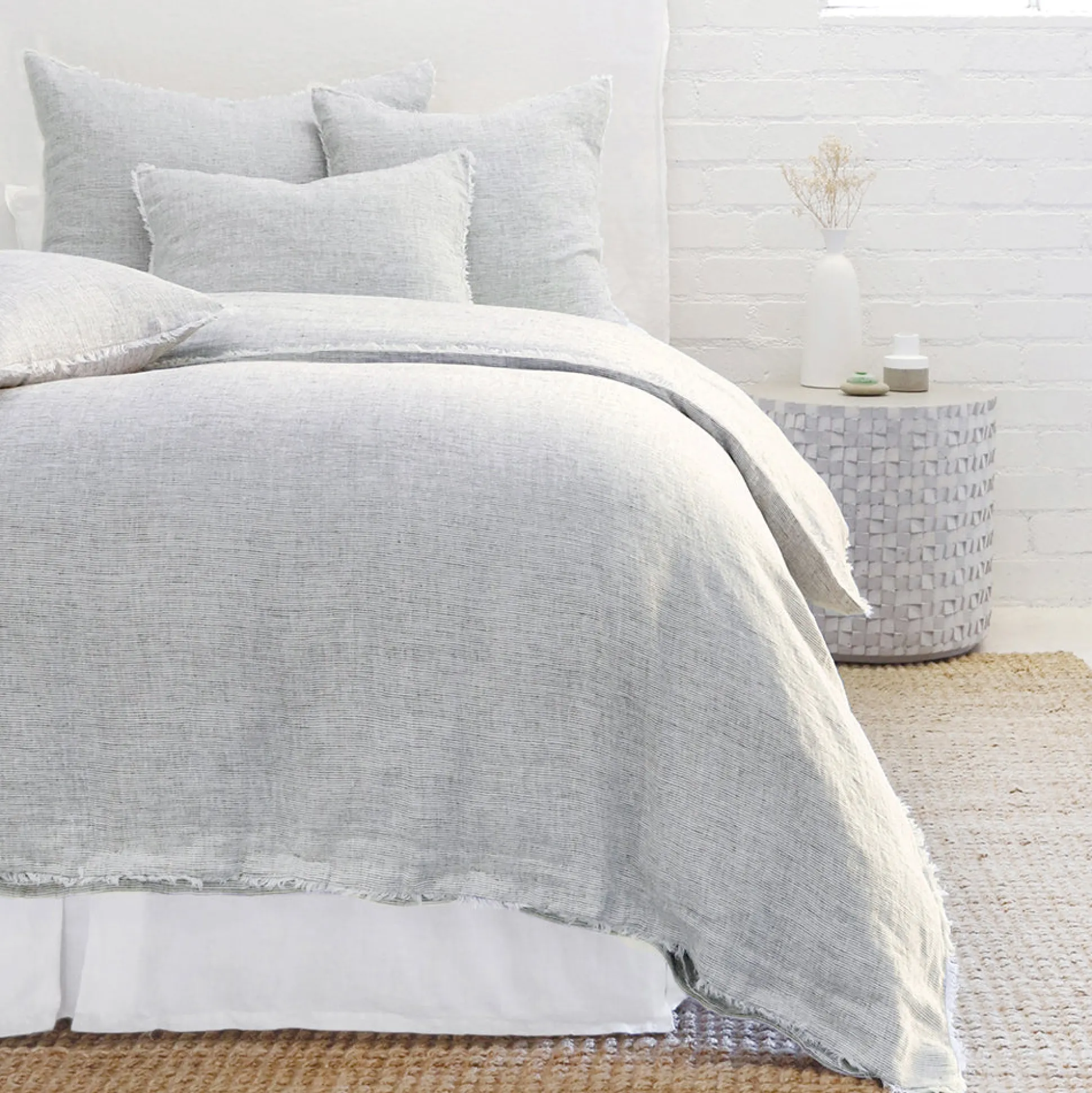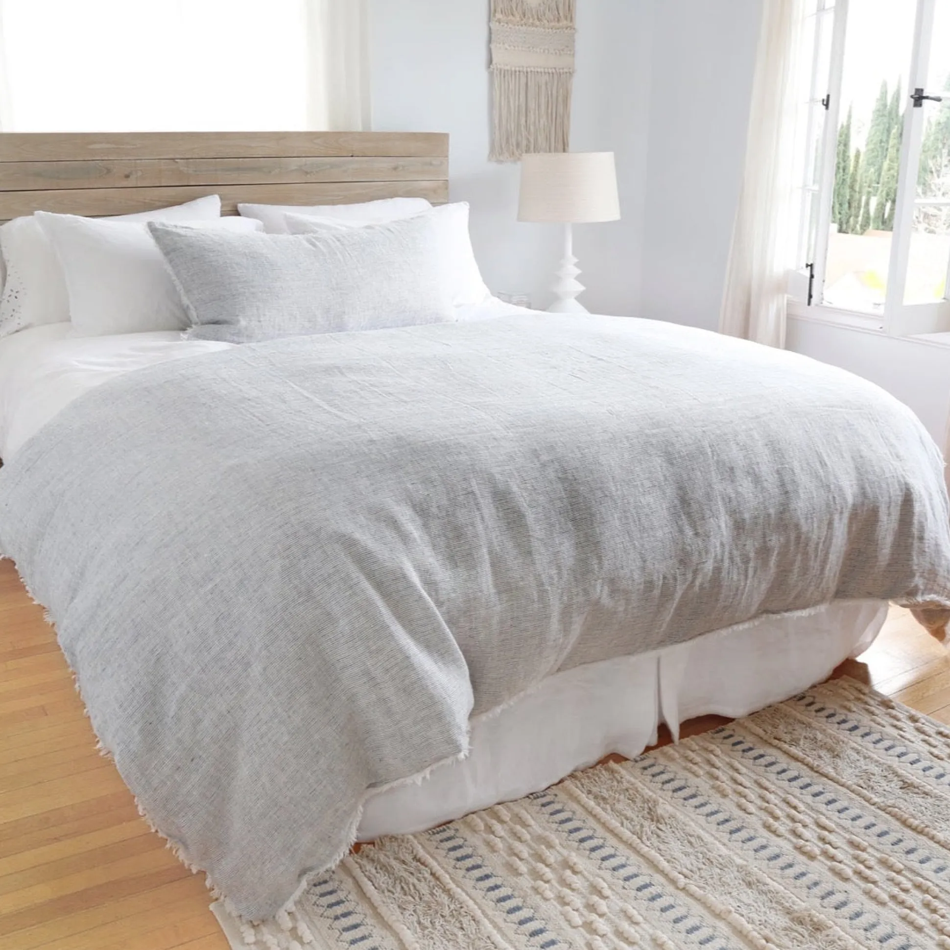Subtle frayed edges of soft linen add a dash of unexpected detail to this Logan Collection. Woven with two different colored yarns for a heathered effect, the duvet cover and shams feature shell button closures.